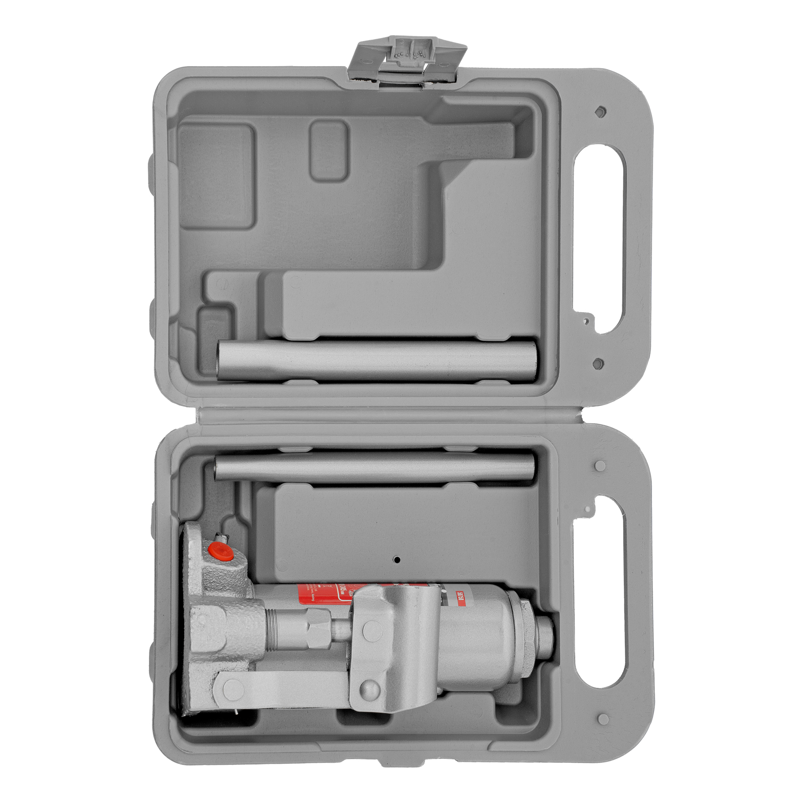 - Удобное хранение и транспортировка — домкрат поставляется в прочном пластиковом кейсе с ручкой.