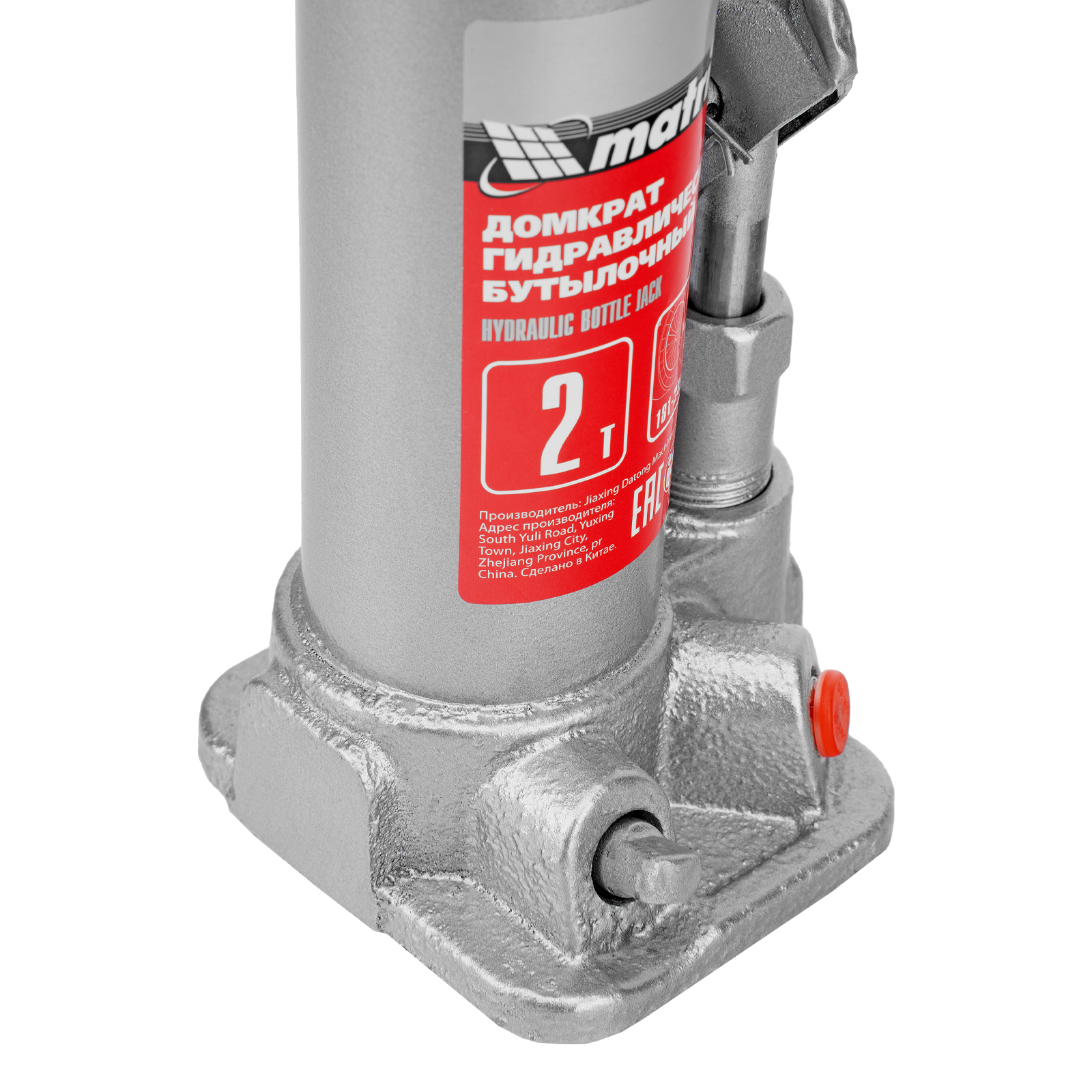 Домкрат гидравлический бутылочный Matrix 50750 предназначен для подъема грузов массой до 2 т на высоту от 181 до 345 мм. Оптимален для машин с большим клиренсом. Будет полезен автолюбителям при проведении технического обслуживания и ремонте авто в дороге или в гараже. Также домкрат подходит для полупрофессионального применения на станциях ТО.