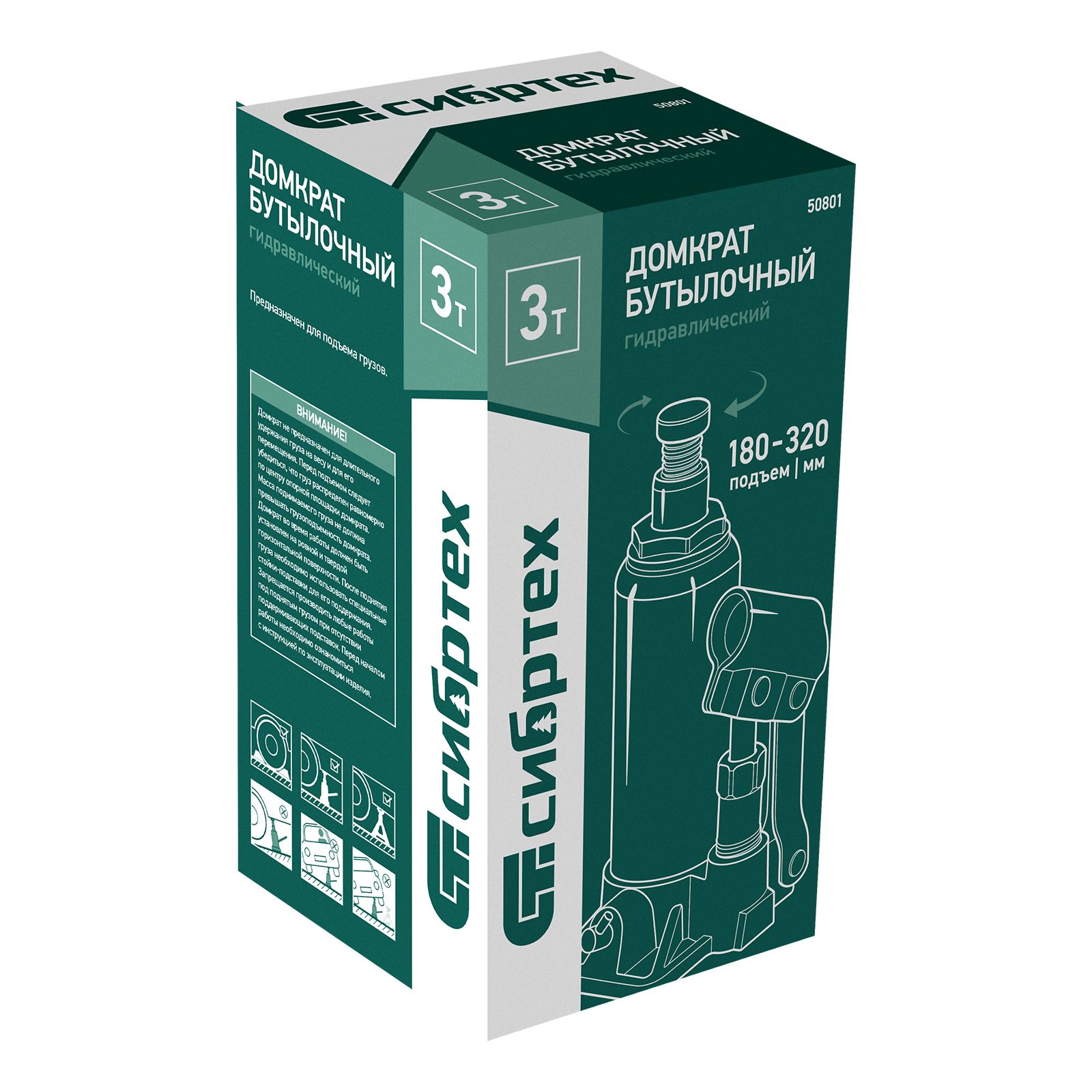 Домкрат гидравлический бутылочный, 3 т, 180-320 мм Сибртех в Уфе