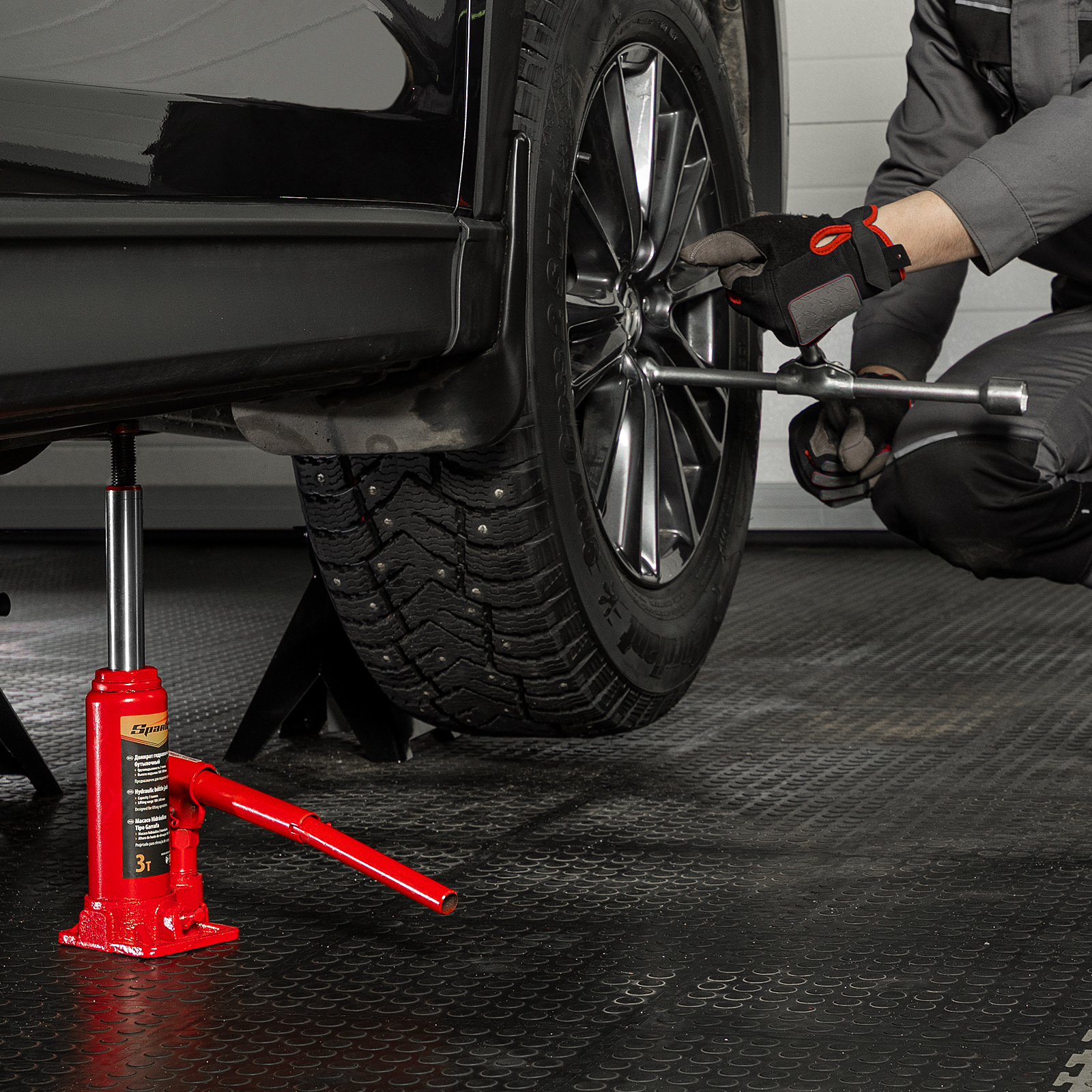 Гидравлический бутылочный домкрат Sparta 50322 рассчитан на подъем грузов весом до 3 т на высоту от 180 до 340 мм. Он пригодится как автолюбителям в гараже, так и профессиональным мастерам в автосервисах. Домкрат обеспечивает плавный подъем груза без особых усилий со стороны пользователя.