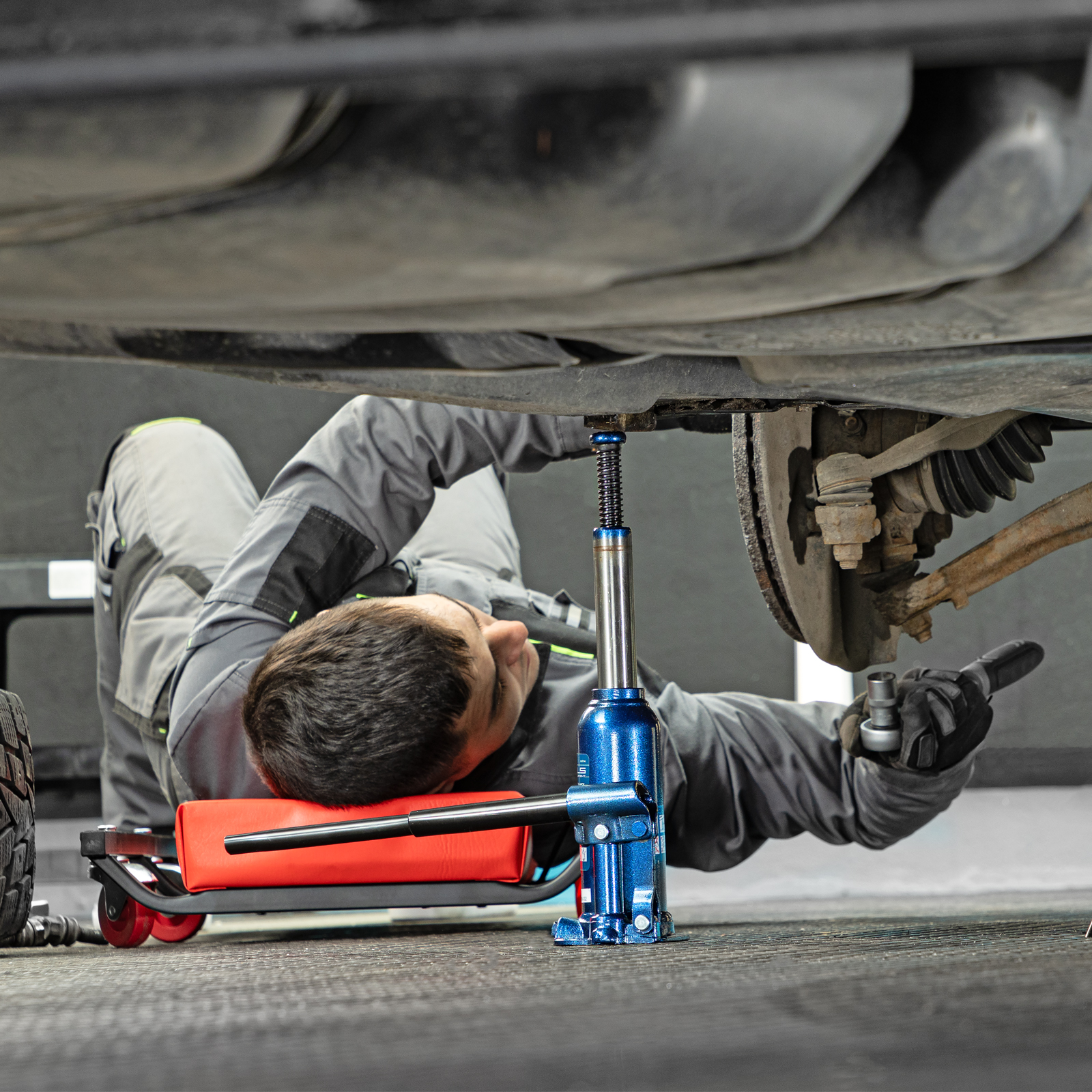 - Удобное хранение и транспортировка — домкрат поставляется в пластиковом кейсе.