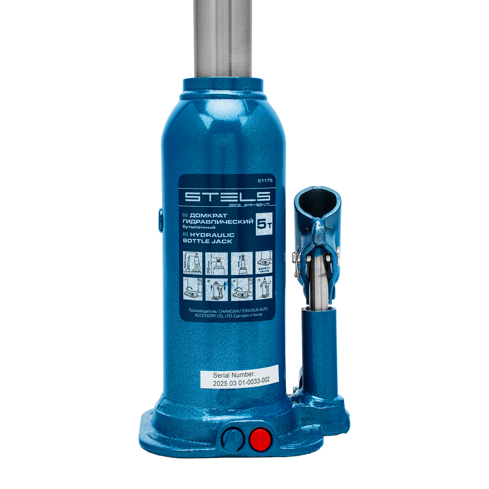 Гидравлический бутылочный домкрат Stels 51175 в пластиковом кейсе предназначен для поднятия грузов весом до 5 т на высоту 207-404 мм. Он не занимает много места и легко помещается в багажник, поэтому его можно брать с собой в дорогу или хранить в гараже. Используется для самостоятельного ремонта авто, также подходит для профессионального применения на станциях технического обслуживания.