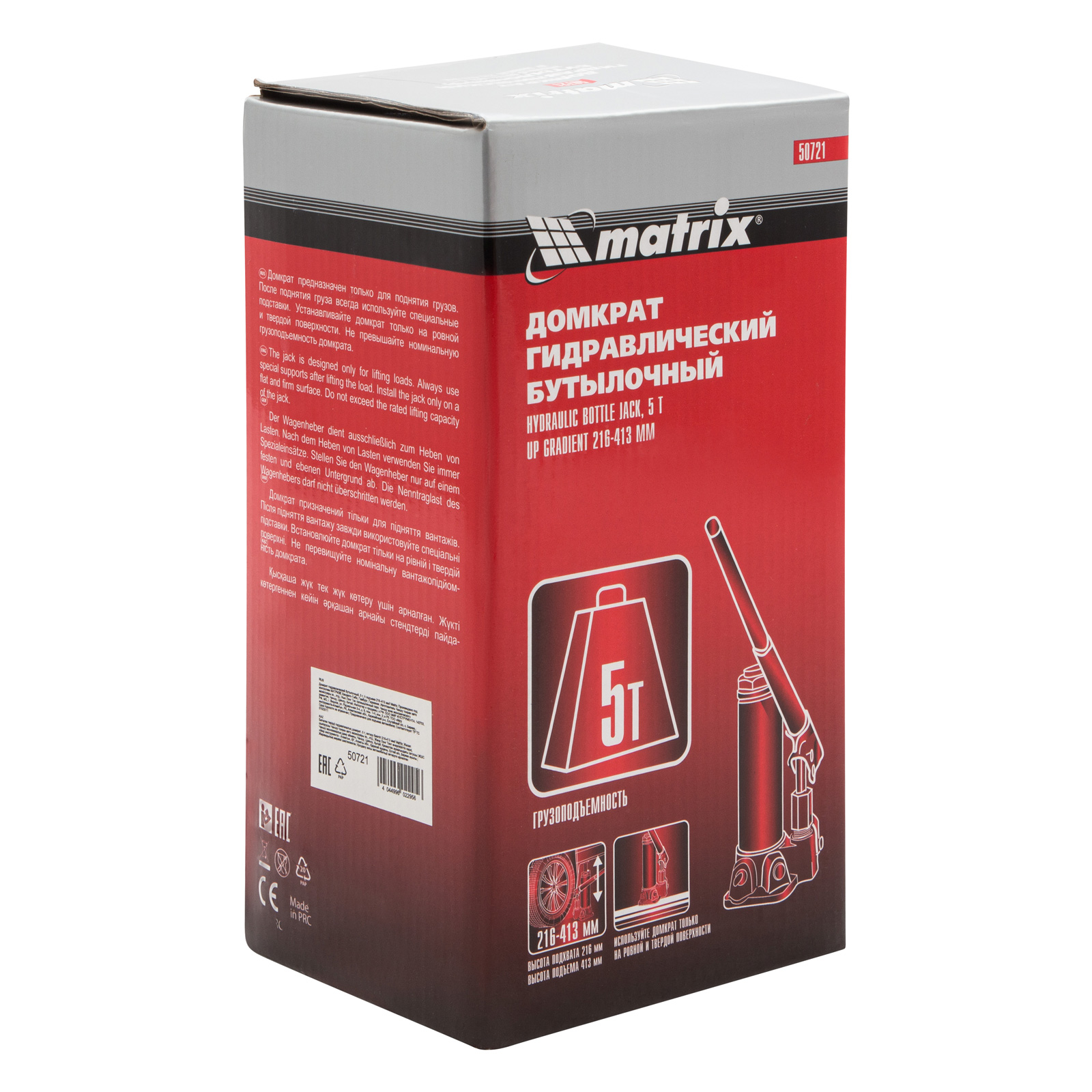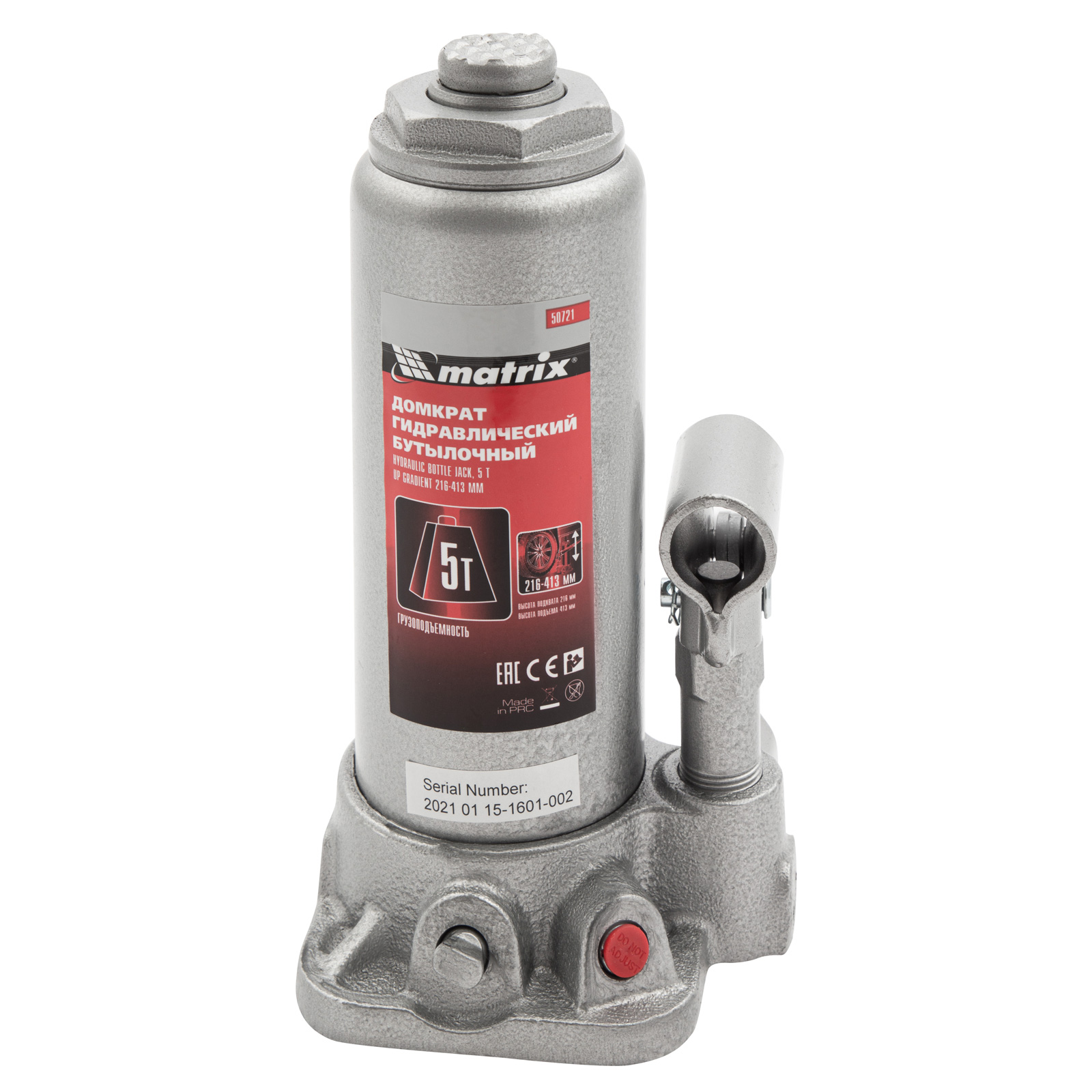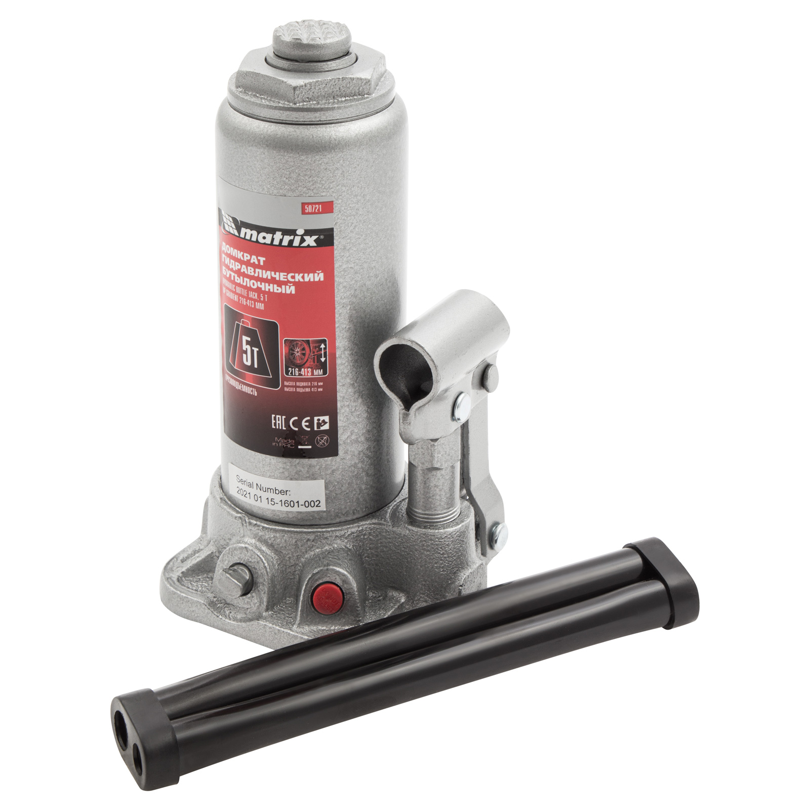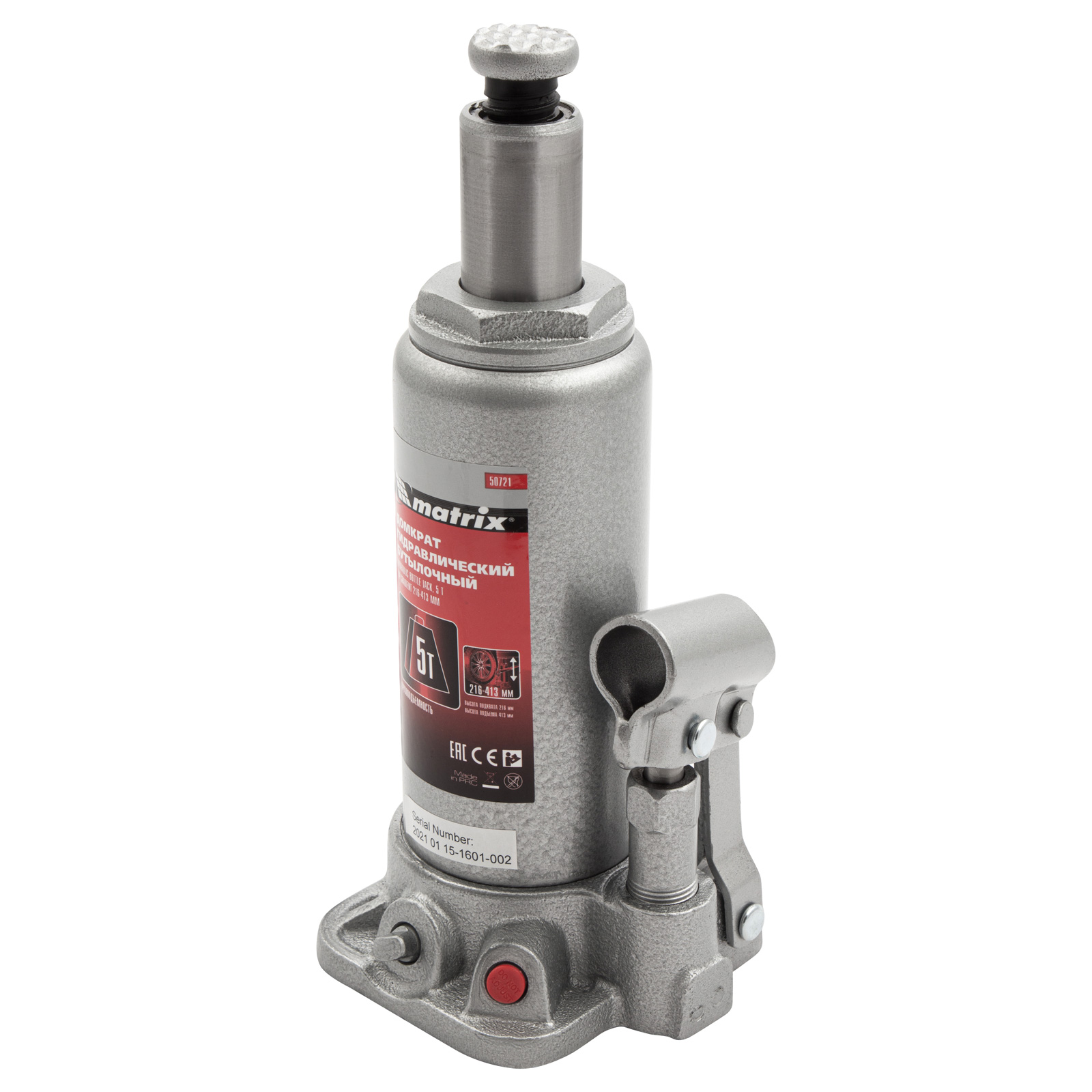 Домкрат гидравлический бутылочный, 5 т, высота подъема 216-413 мм Matrix в Уфе