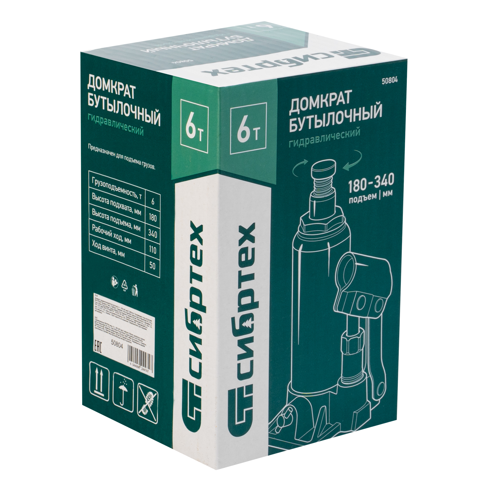 Домкрат гидравлический бутылочный, 6 т, 180-340 мм Сибртех