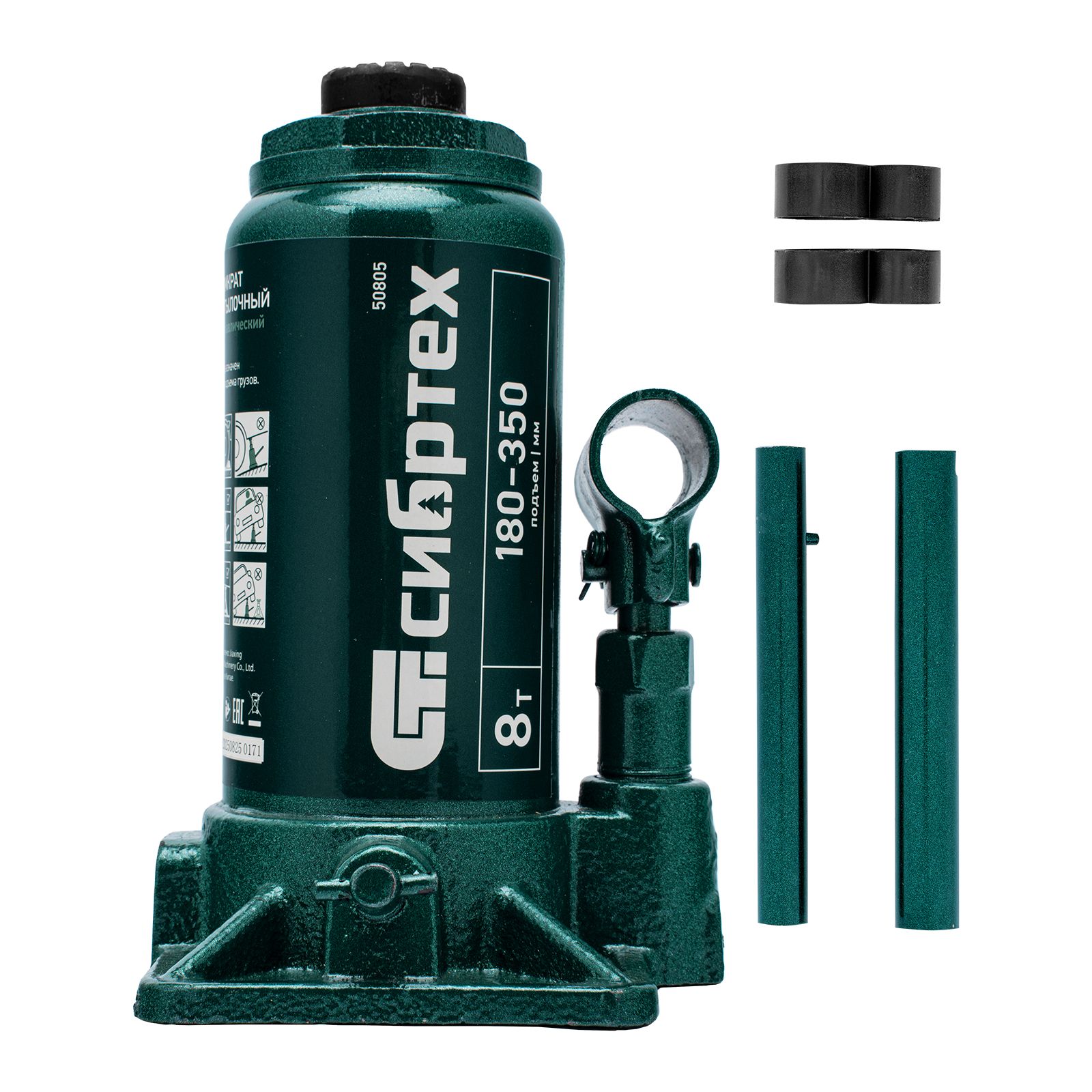 Домкрат гидравлический бутылочный Сибртех 50805 предназначен для подъема грузов массой до 8 т на высоту от 180 до 350 мм. Не требует больших усилий от пользователя и значительно облегчает рабочий процесс. Домкрат будет полезен при проведении техобслуживания машины в автосервисе или гараже.
