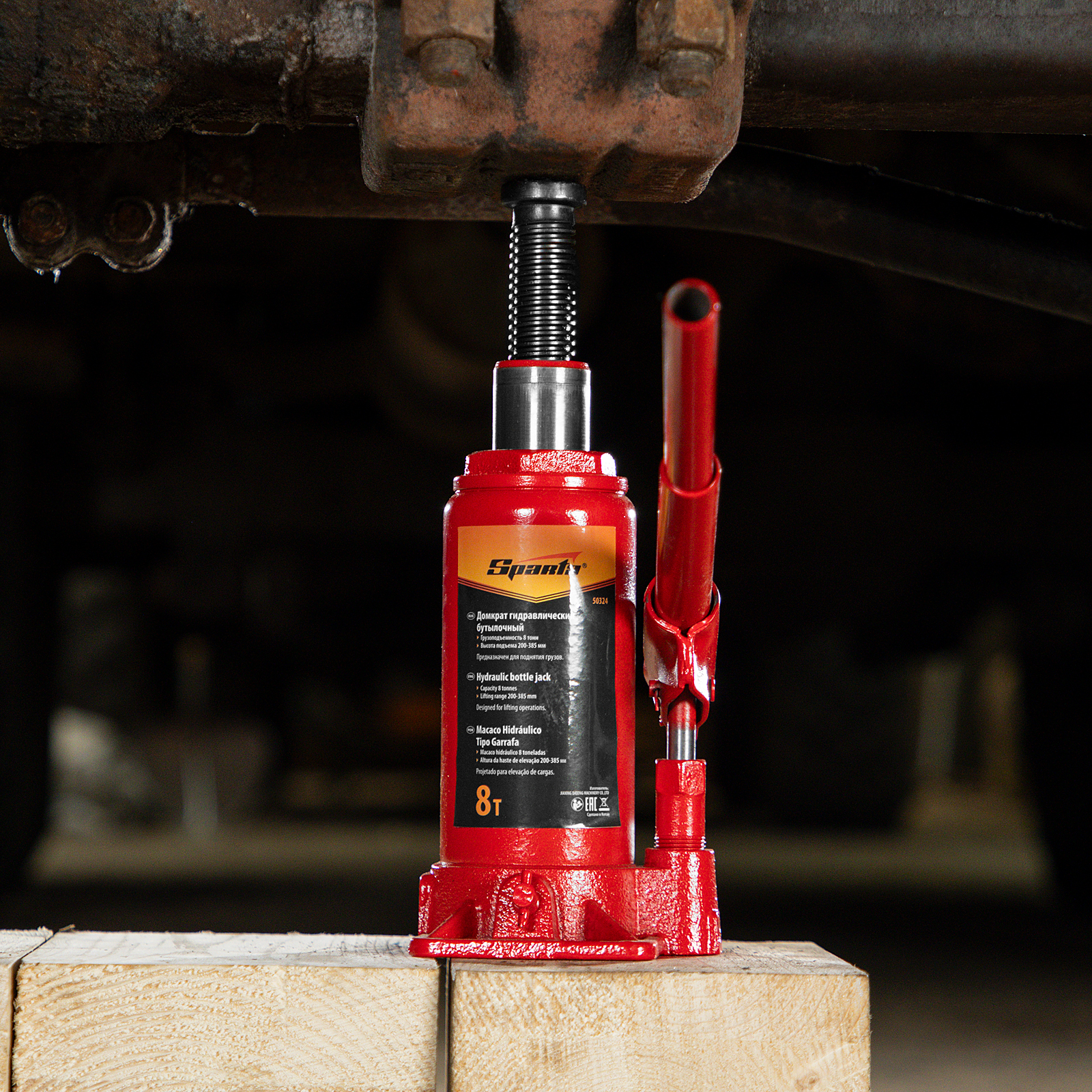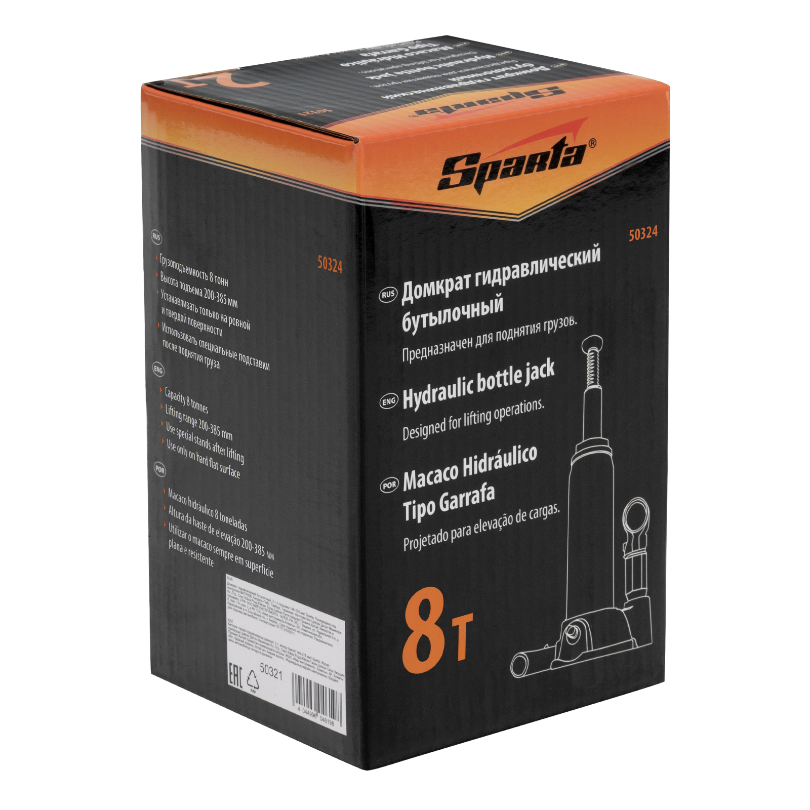 Гидравлический бутылочный домкрат Sparta 50324 рассчитан на подъем грузов весом до 8 т на высоту от 200 до 385 мм. Он пригодится как автолюбителям в гараже, так и профессиональным мастерам в автосервисах. Домкрат обеспечивает плавный подъем груза без особых усилий со стороны пользователя.