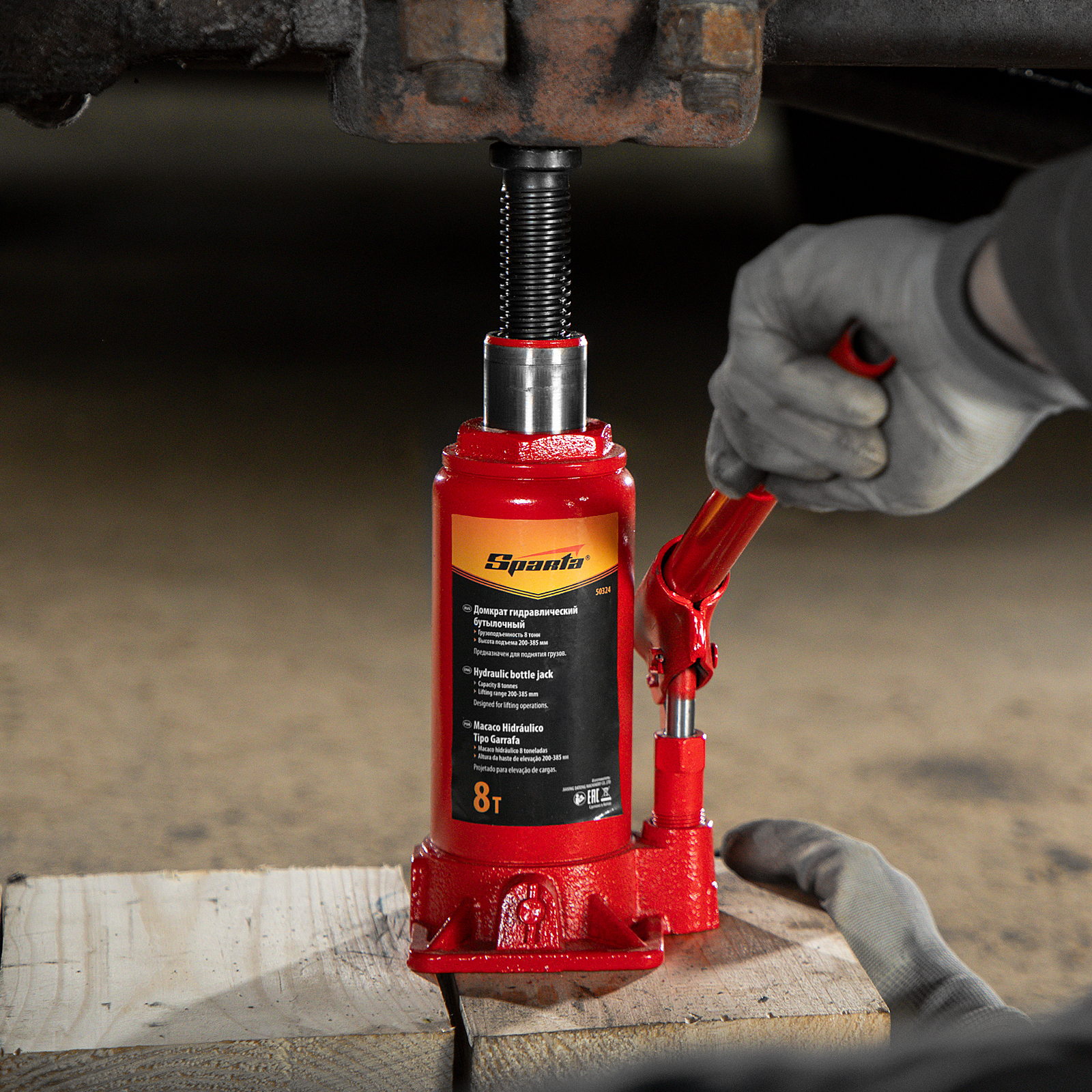 Домкрат гидравлический бутылочный, 8 т, h подъема 200-385 мм Sparta в Уфе