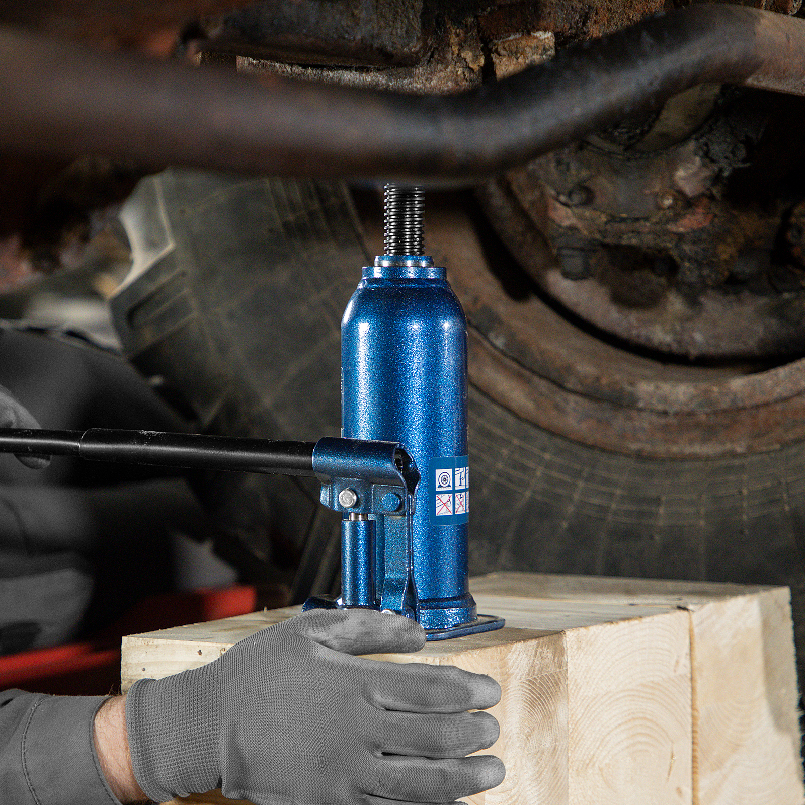 - Безопасная эксплуатация — благодаря предохранительному клапану домкрат не поднимает грузы тяжелее 8000 кг.