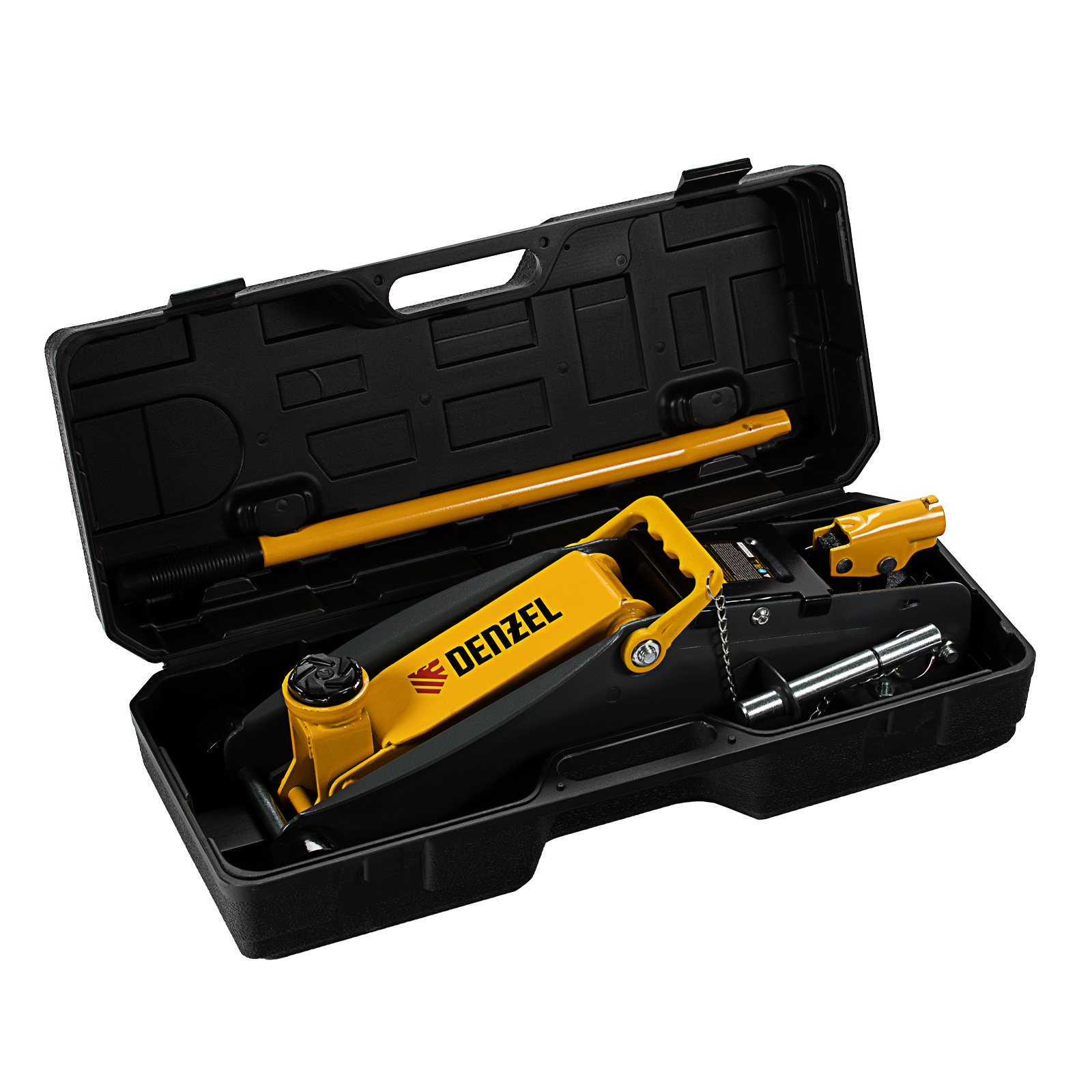 Домкрат гидравлический подкатной с фиксатором, 2,8 т, 135-385 мм, в кейсе Denzel в Уфе
