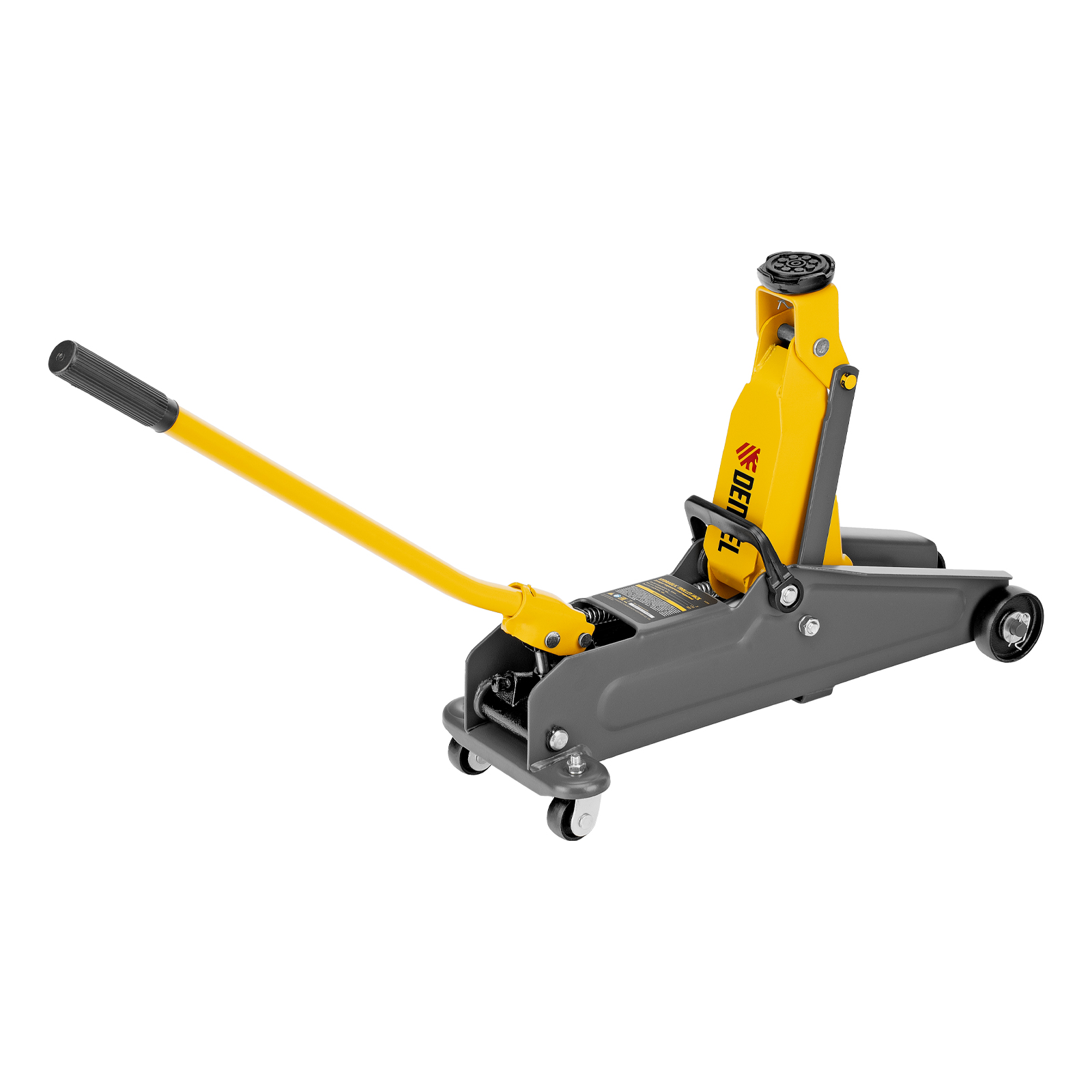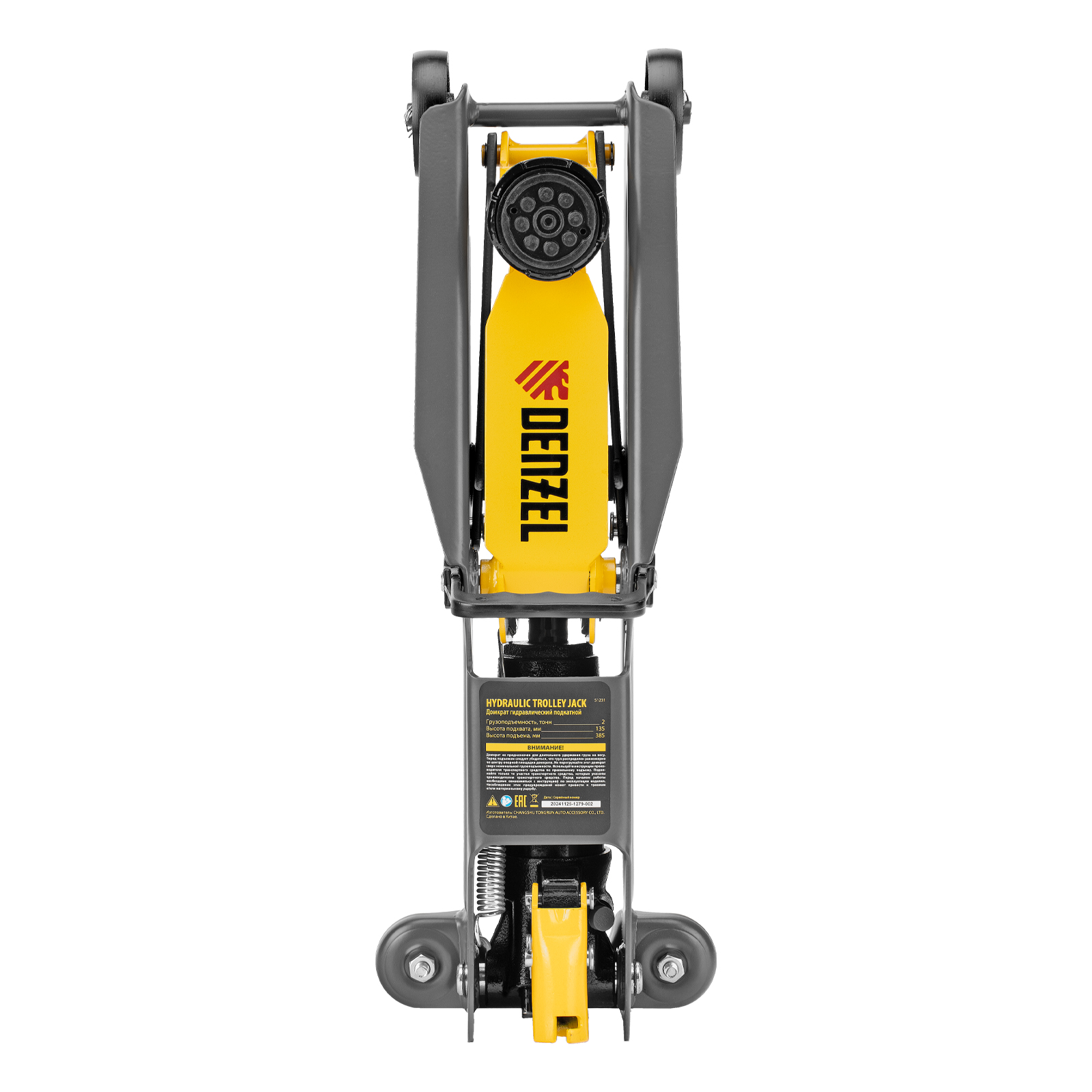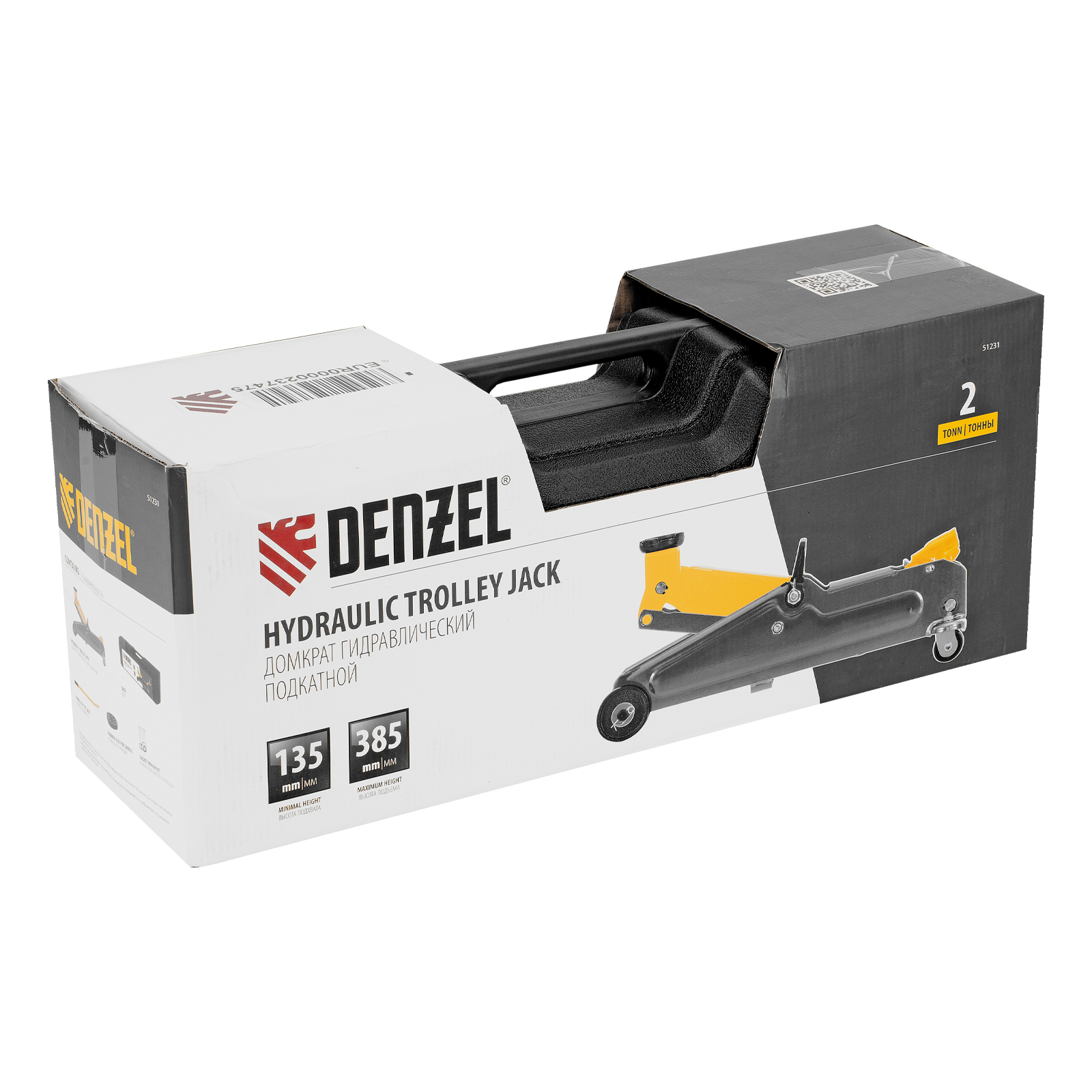 Гидравлический подкатной домкрат Denzel 51231 с высотой подхвата 135 мм, поставляющийся в пластиковом кейсе, предназначен для плавного подъема грузов массой до 2 т на высоту до 385 мм. Домкрат пригодится владельцам легковых автомобилей со стандартным клиренсом.