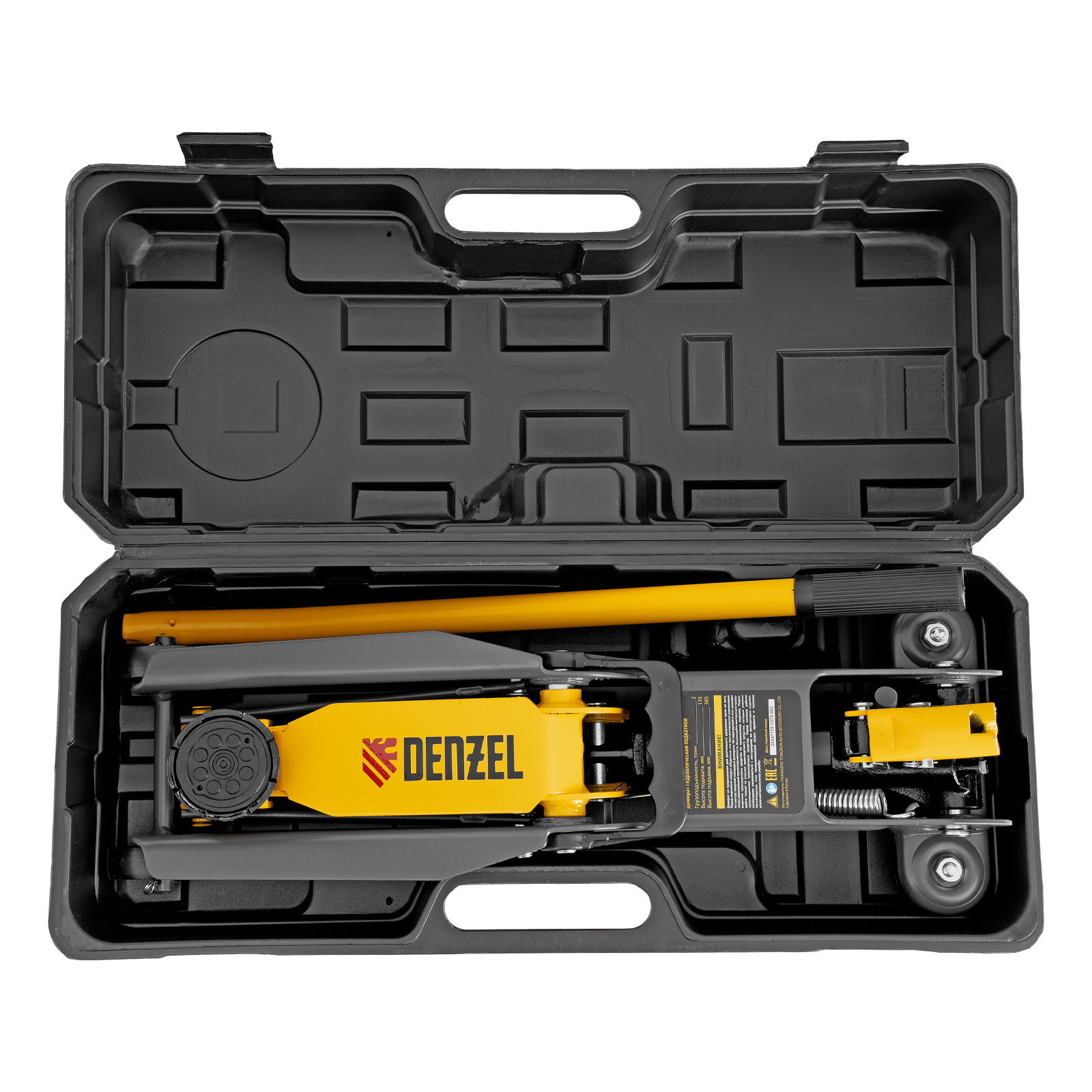Домкрат гидравлический подкатной, 2 т, 135-385 мм, в пласт. кейсе Denzel в Уфе