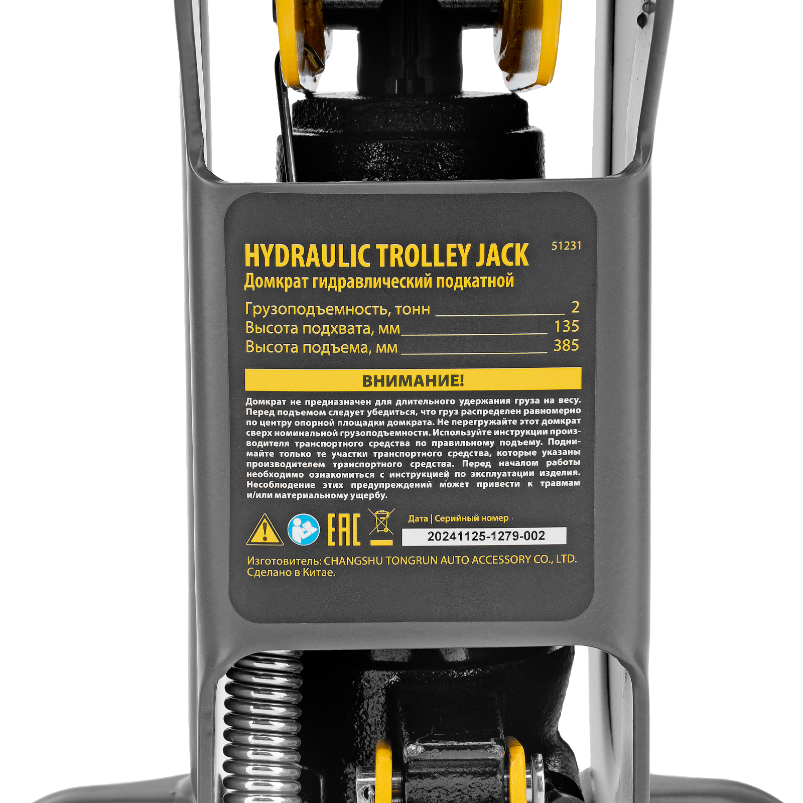 - Защита от поломки — предохранительный клапан не допускает подъема груза массой более 2 т.