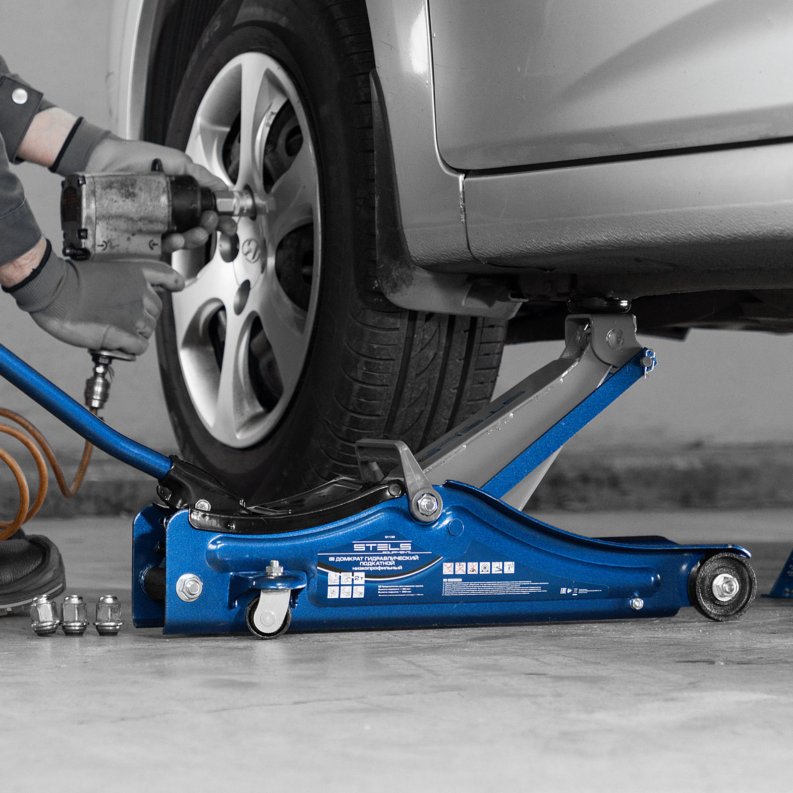 - Маневренность — благодаря поворотным колесам домкрат можно быстро подвести под груз.
