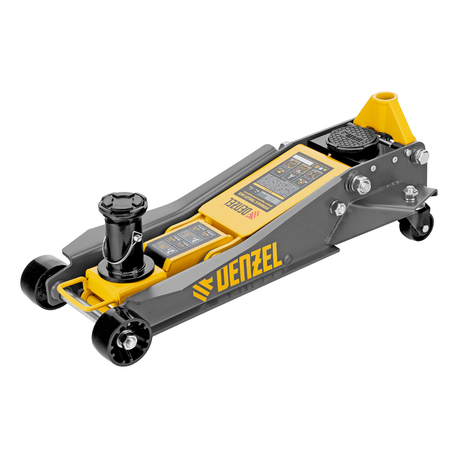 Профессиональный подкатной гидравлический домкрат Denzel 51270 с низким подхватом используется для быстрого подъема на высоту 98-770 мм всех типов автомобилей с любым клиренсом и массой до 2-3 т, в том числе SUV (внедорожников). Регулируемая проставка позволяет менять высоту подхвата и подъема, а также максимальную грузоподъемность. Высота подъема до 770 мм позволяет без труда обслуживать автомобили с высоким клиренсом, такие как рамные внедорожники, например, Dodge RAM, Ford Raptor и т.д.