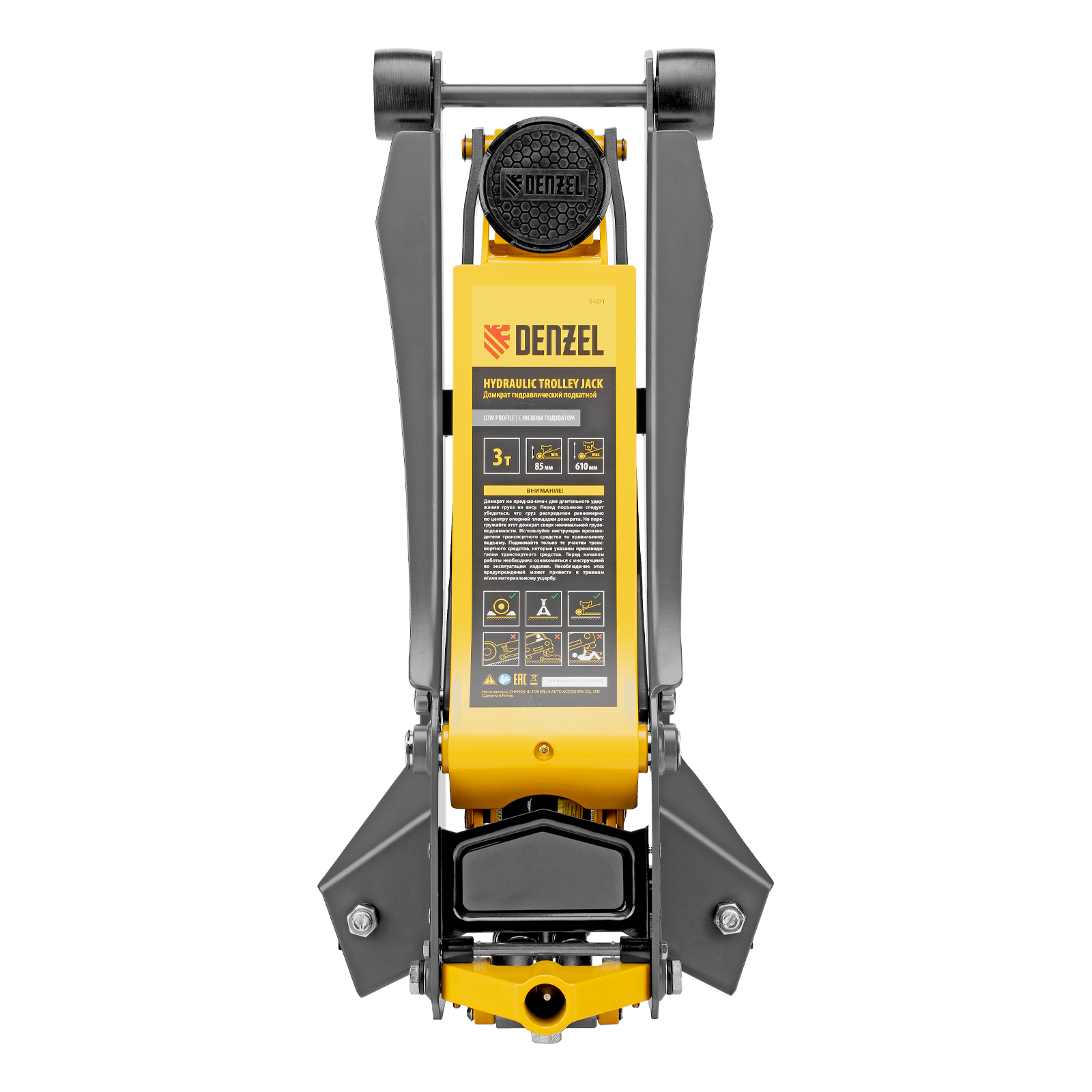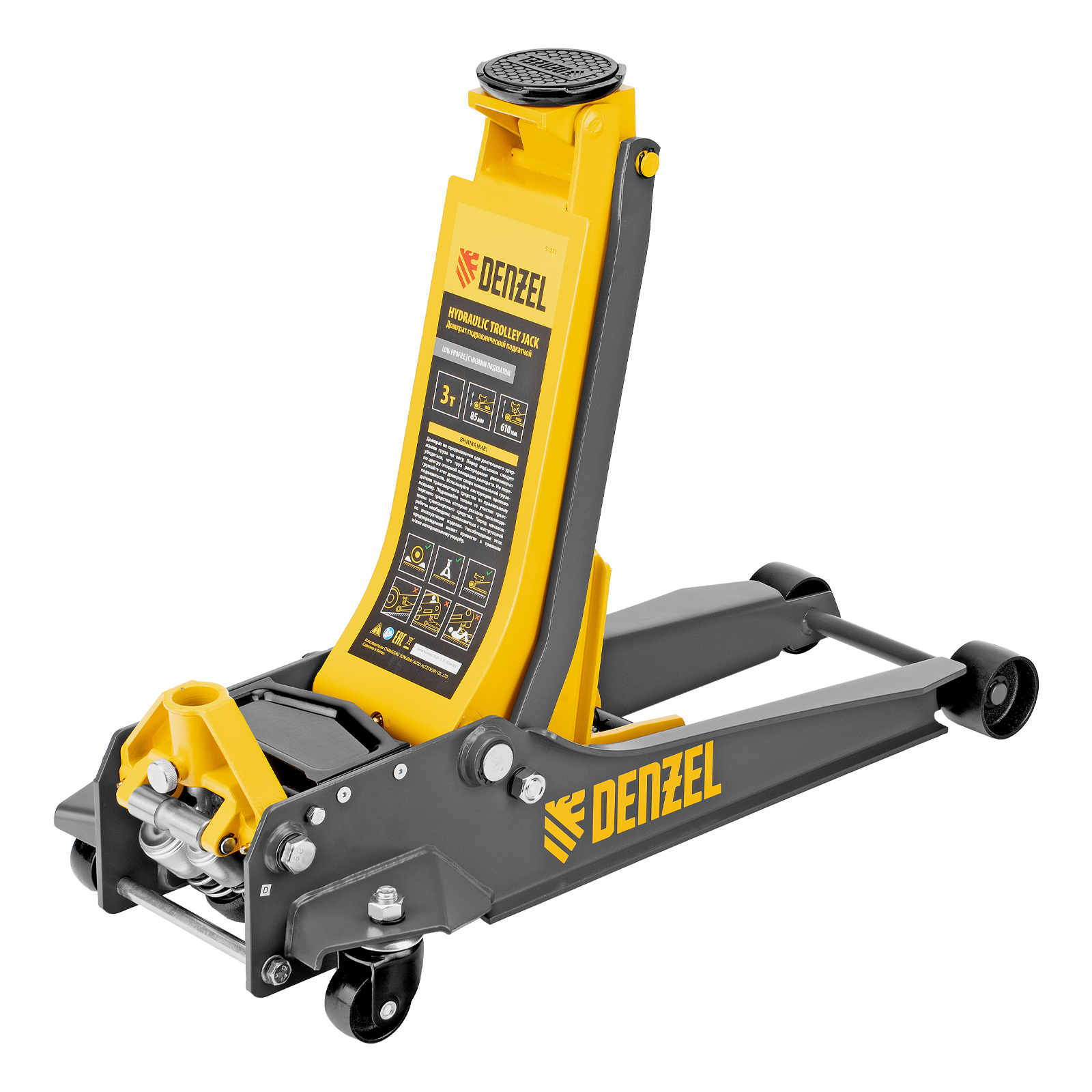 Домкрат гидравлический подкатной, 3 т, 85-610 мм, быстрый подъем, низ. подхват, проф, SUV Denzel в Уфе