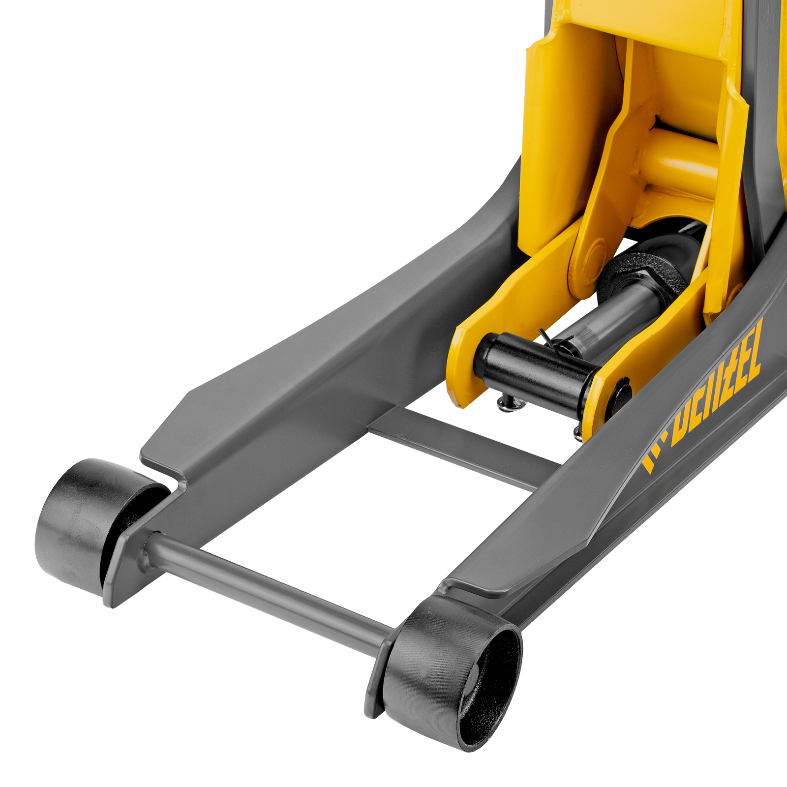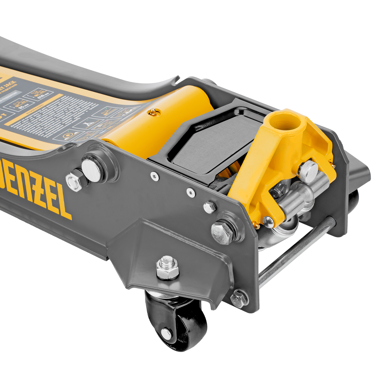 - Внимание к деталям — передние колеса домкрата имеют масленки для смазки подшипников, такое решение исключает возможность заклинивания механизма во время интенсивной работы.