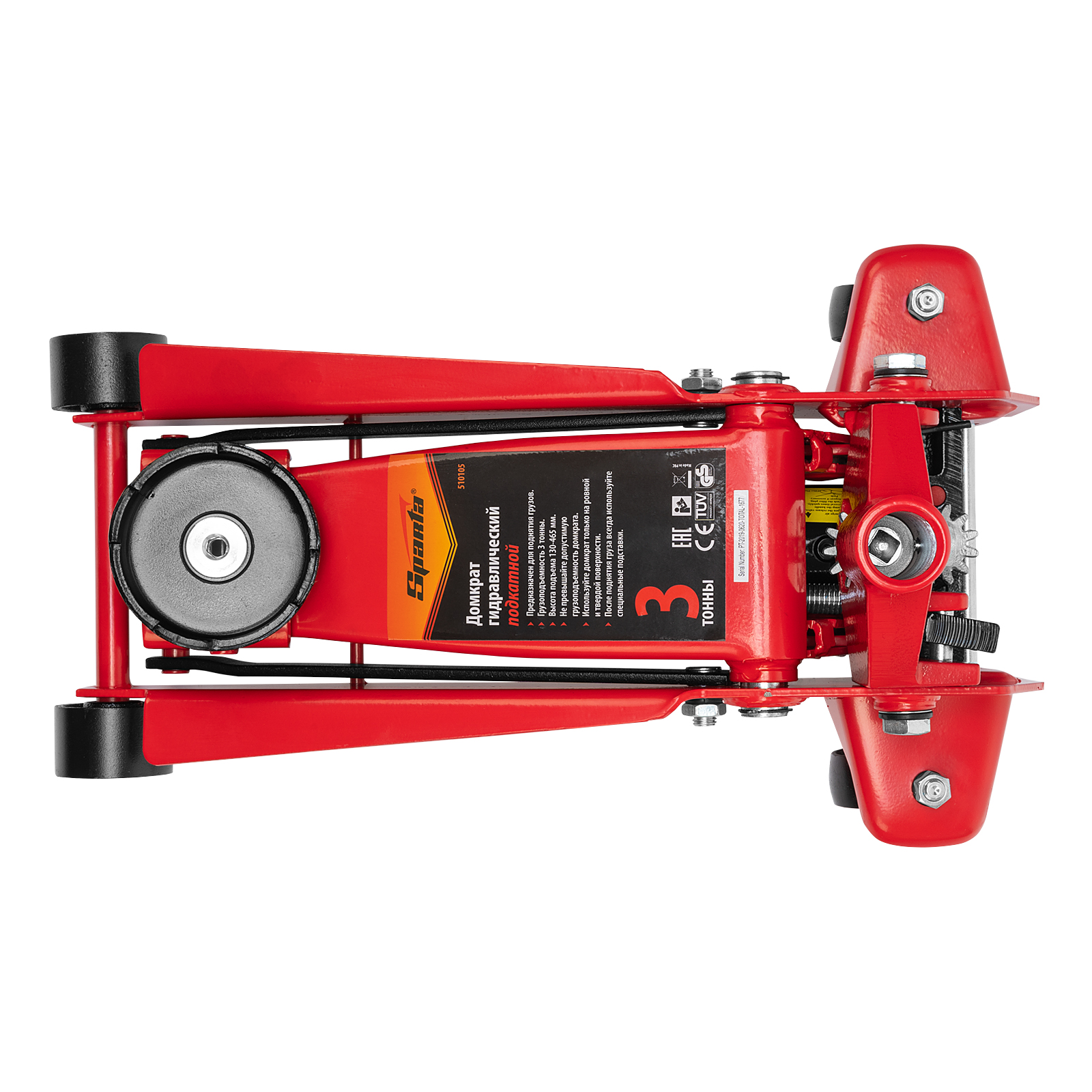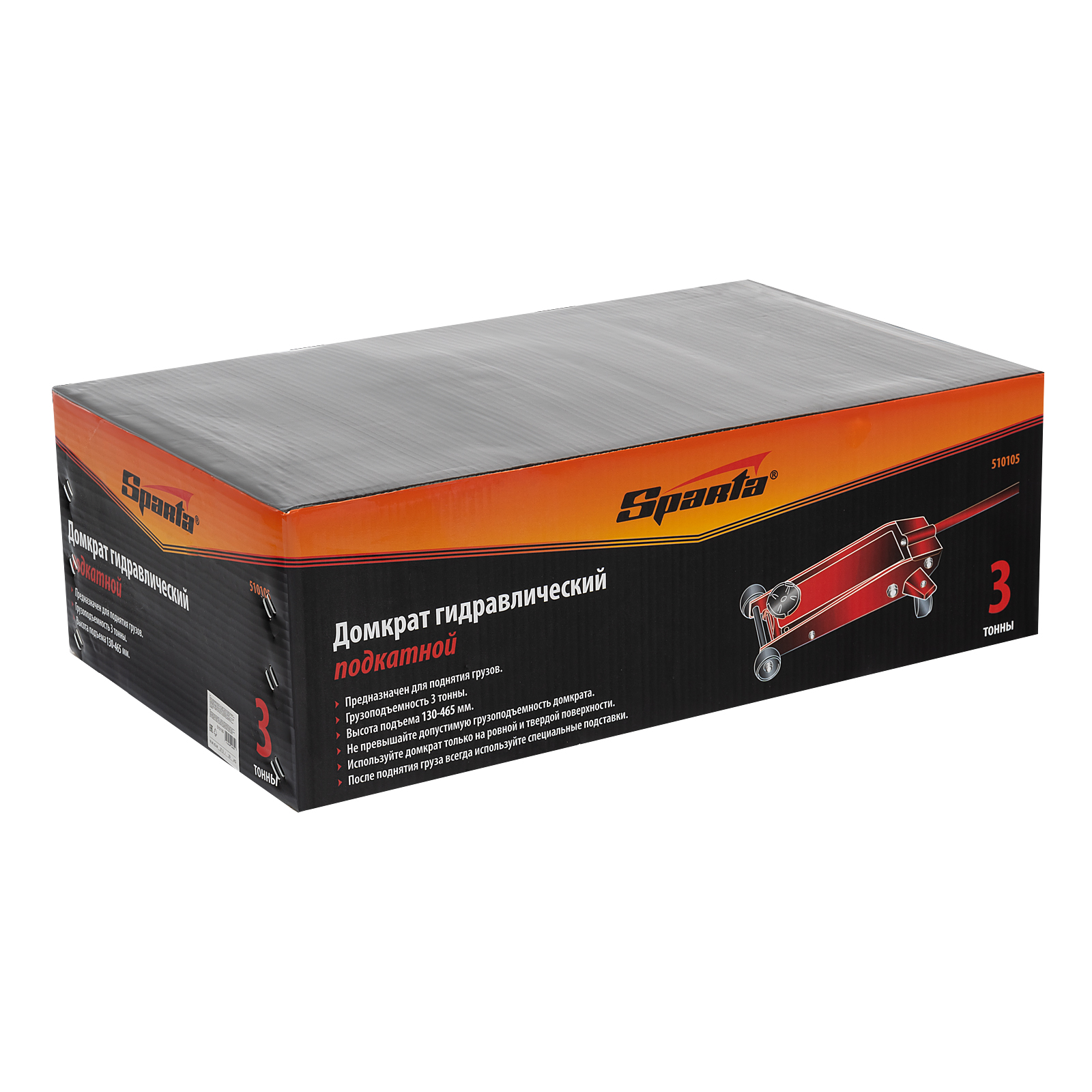 Гидравлический подкатной домкрат Sparta 510105 с высотой подъема 130 мм используется для подъема автомобилей массой до 3 тонн на высоту до 465 мм для их ремонта и обслуживания. Подходит для автомашин со стандартным клиренсом. Домкрат входит в оснащение гаражей и автосервисов.