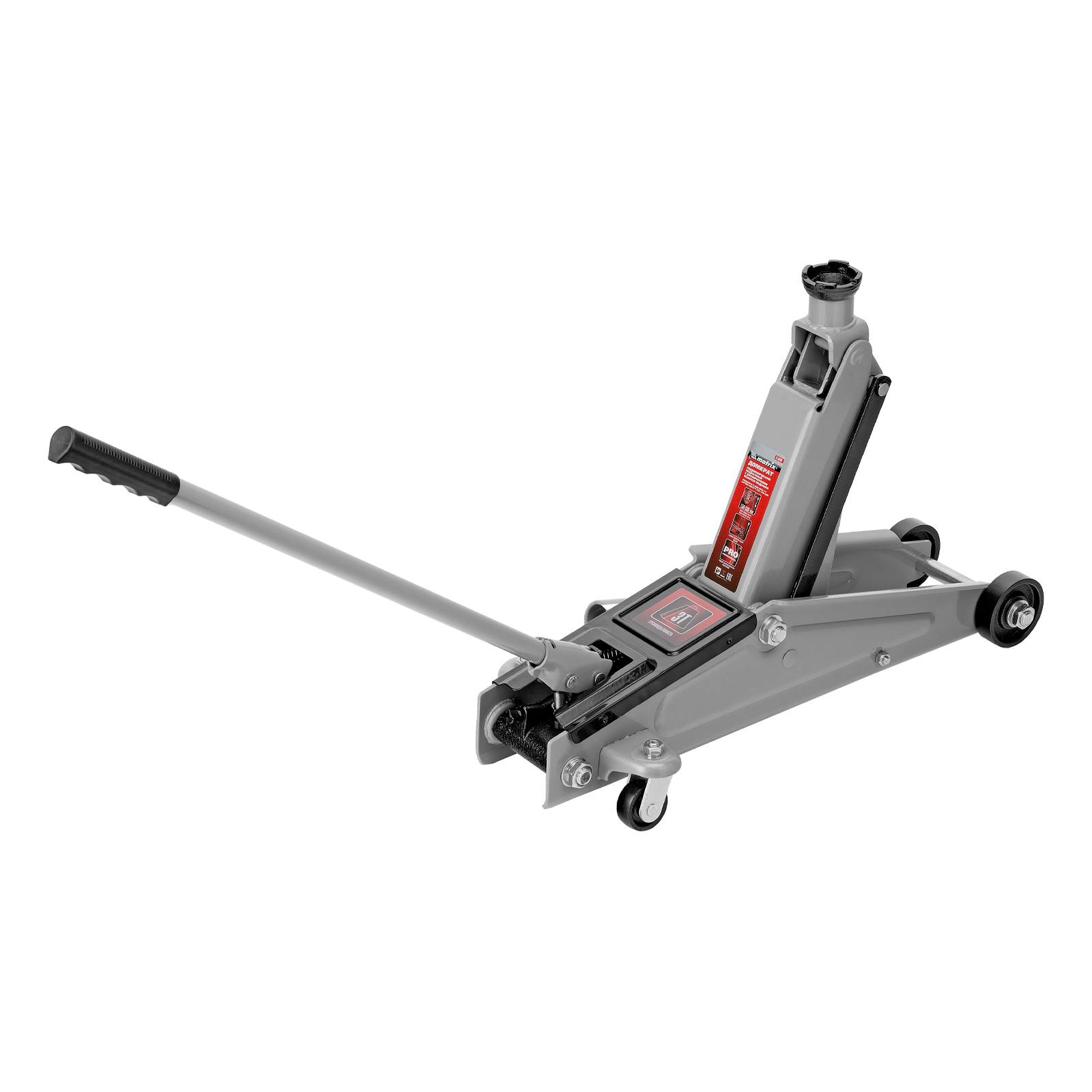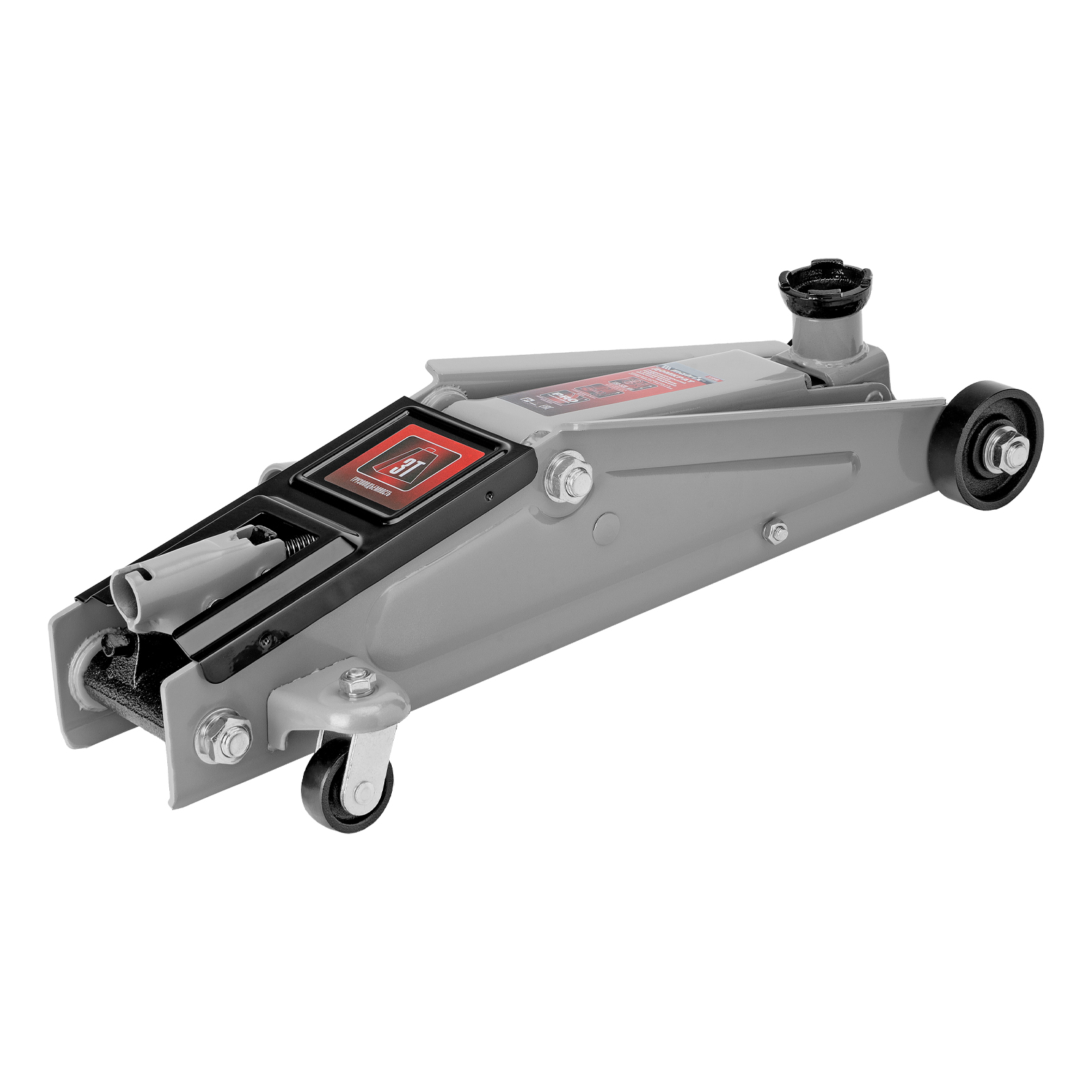 - Безопасная эксплуатация — предохранительный клапан препятствует подъему груза массой более 3 т, предотвращая поломку домкрата.