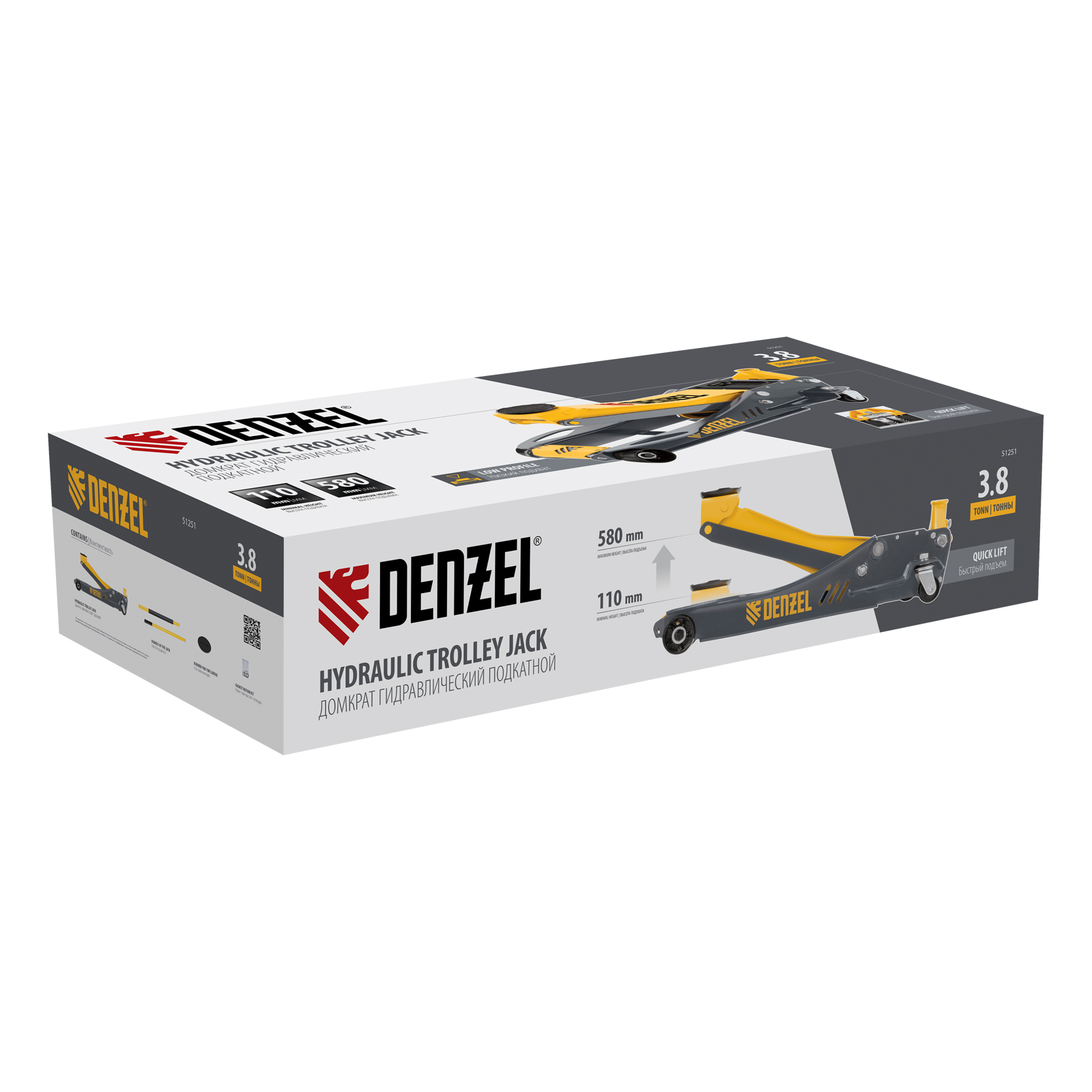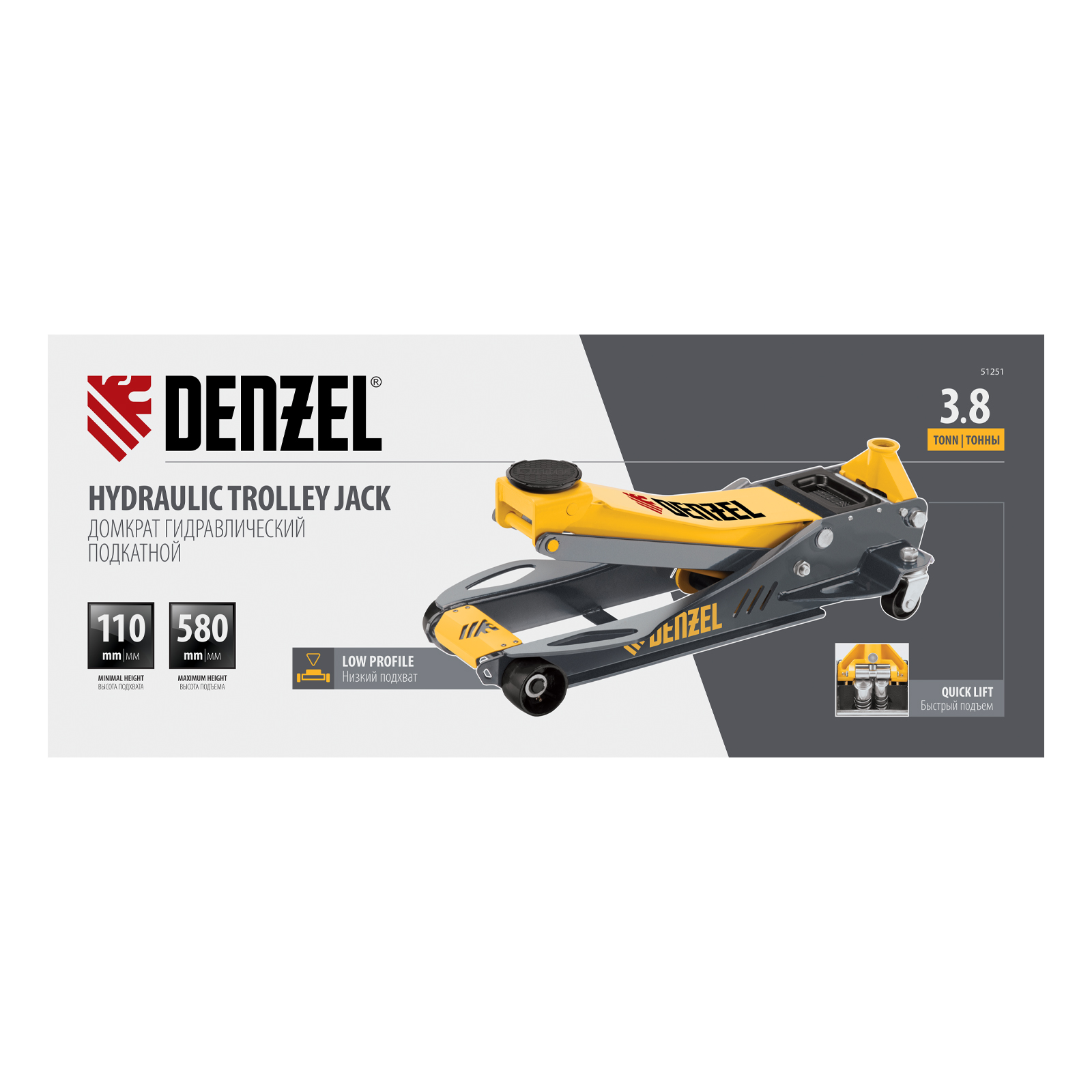 Домкрат гидравлический подкатной, 3,8 т, 110-580 мм, быстрый подъем, низкий подхват, проф. Denzel в Уфе