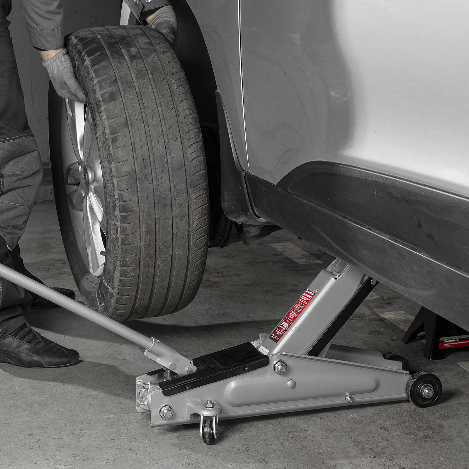 Подкатной гидравлический домкрат Matrix 510335 с высотой подхвата 130 мм — полупрофессиональное гаражное оборудование, способное поднимать груз массой до 3 т на высоту до 410 мм. Высота подхвата 130 мм позволяет использовать домкрат для автомашин со стандартным клиренсом. Домкрат будет полезен как в автомастерской, так и в частном гараже.