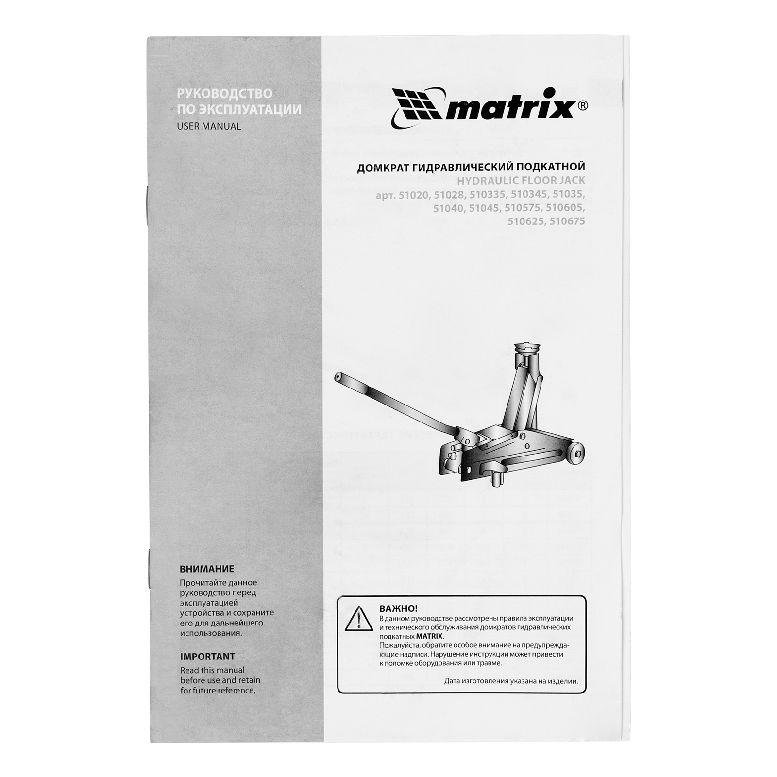 Домкрат гидравлический подкатный, 3 т, высота подъема 130-410 мм Matrix в Уфе