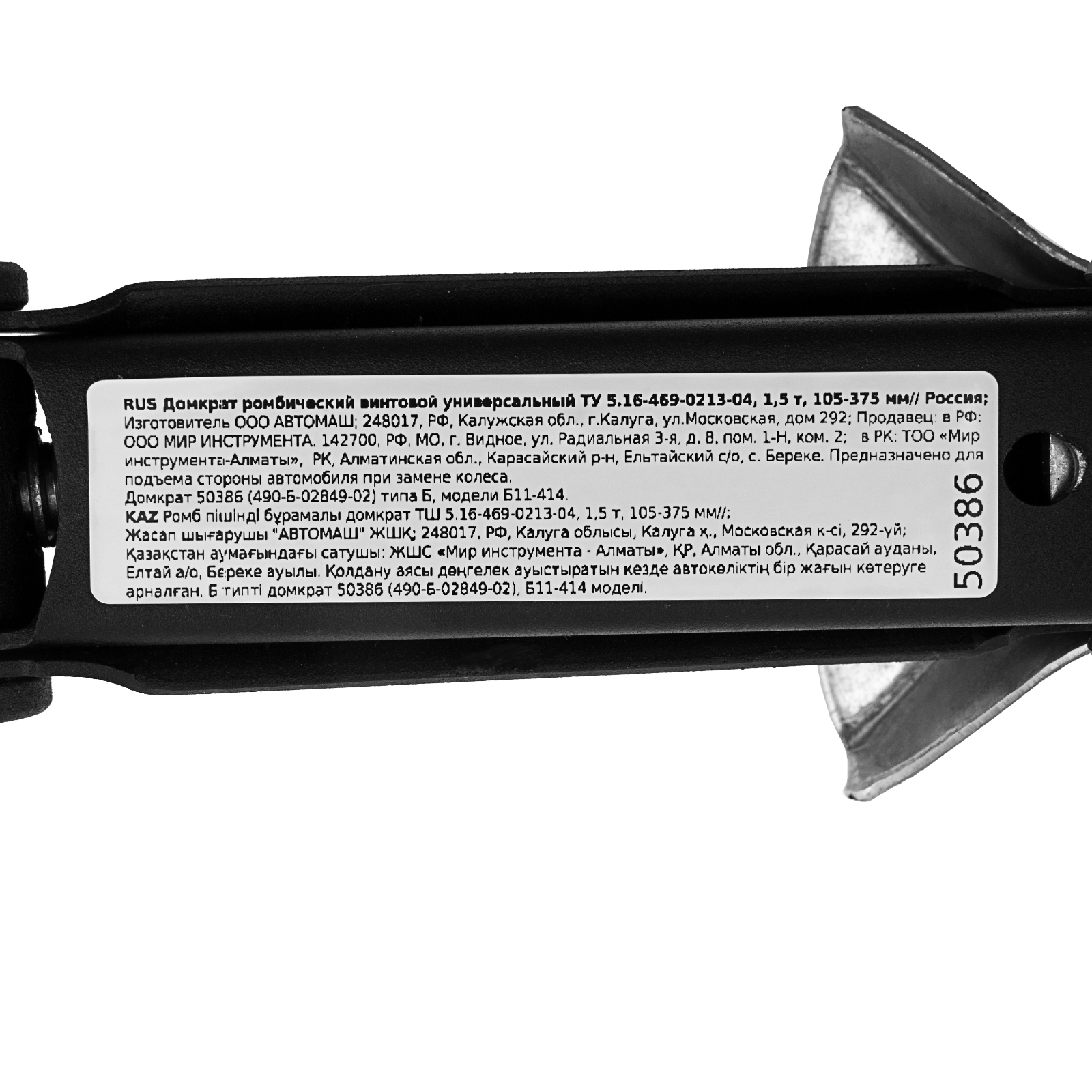 Домкрат ромбический винтовой универсальный ТУ 5.16-469-0213-04, 1,5 т, 105-375 мм в Уфе