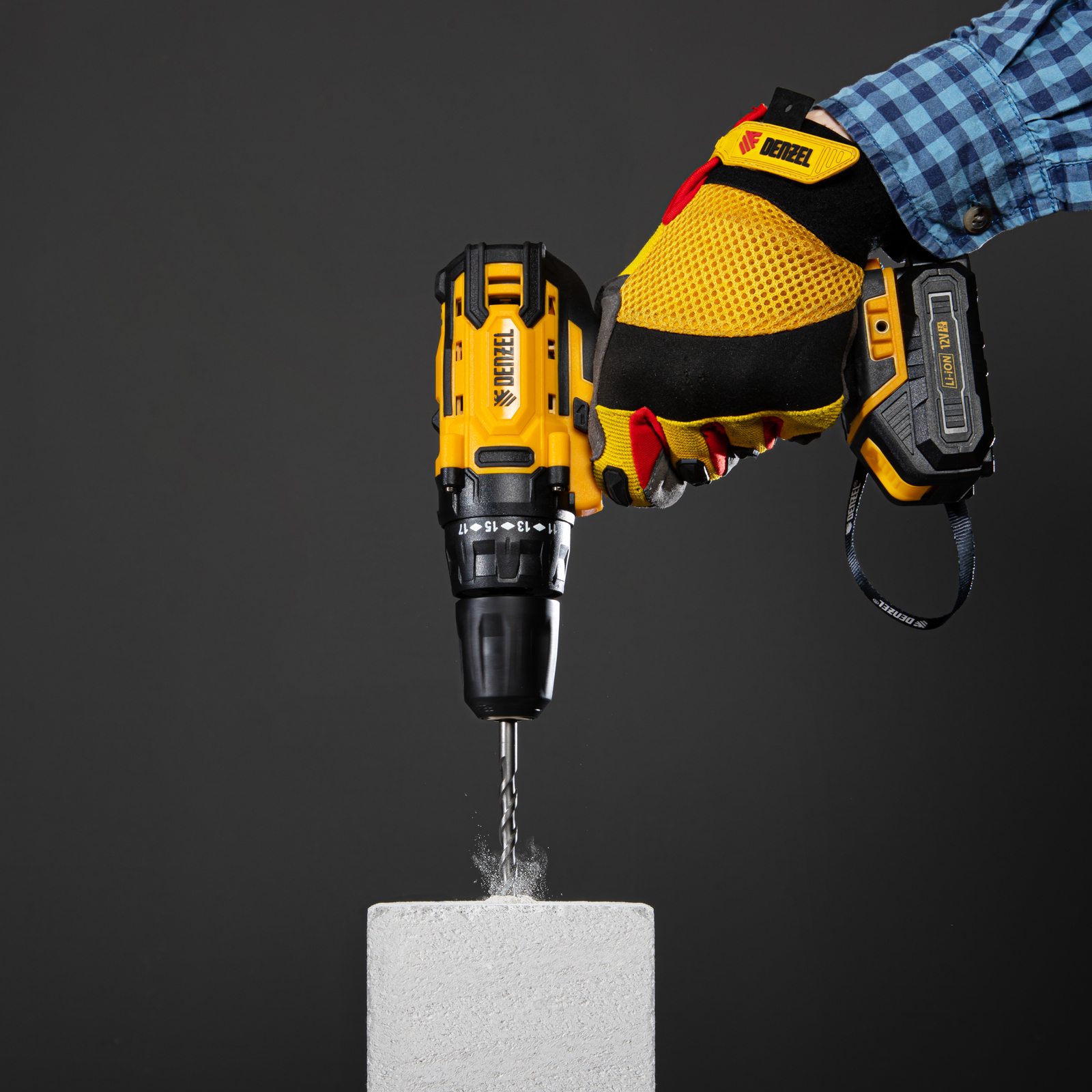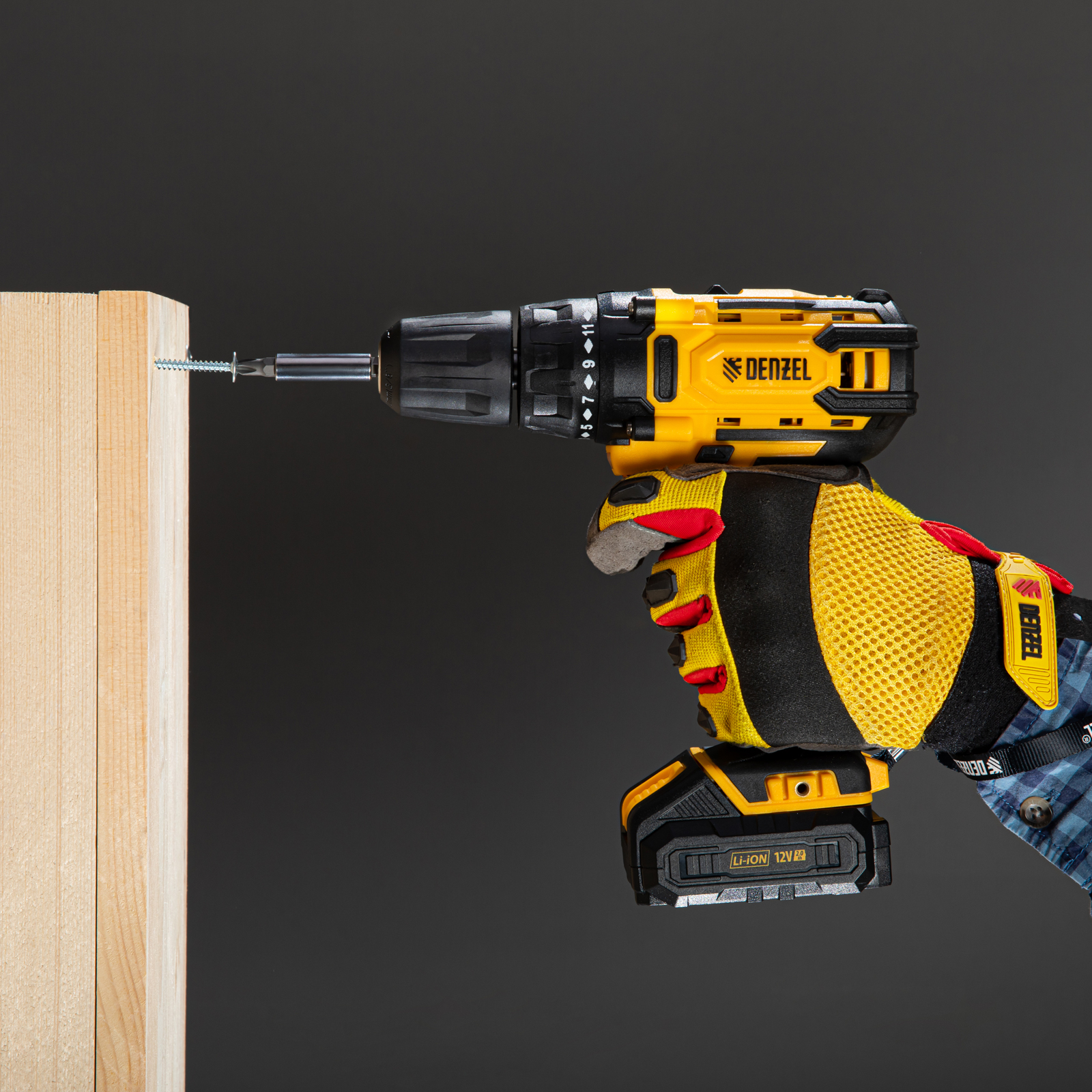 Дрель-шуруповерт аккумуляторная CDL-12-01CB, Li-Ion, 12 В, 1 акк. Denzel в Уфе