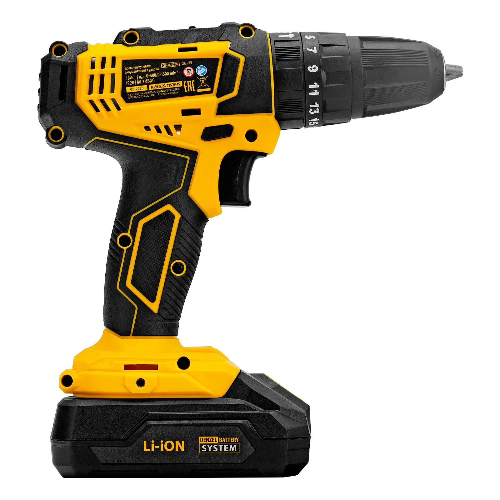 Дрель-шуруповерт аккумуляторная ударная CID-18-02BM, Li-Ion, 18 В, 2 акк. Denzel в Уфе