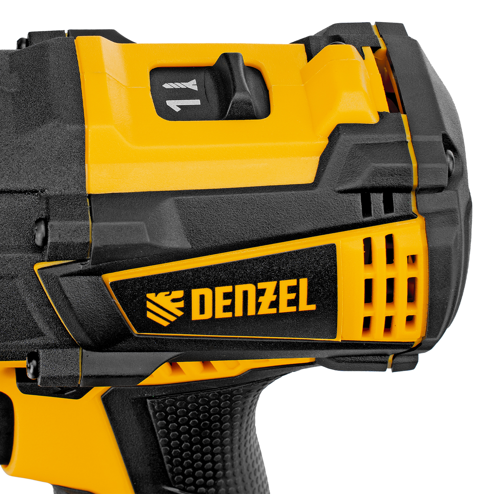 - Универсальность — дрель-шуруповерт совместима с любым Li-Ion аккумулятором и зарядным устройством единой платформы Denzel Battery System 18V.