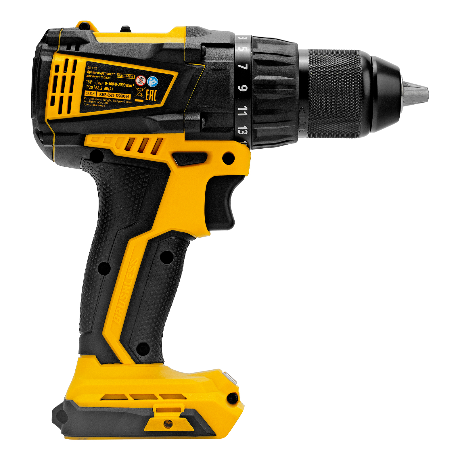 Аккумуляторная дрель-шуруповерт Denzel BLDL-IB-18-0 26122 с бесщеточным двигателем работает от аккумулятора Li-Ion с рабочим напряжением 18 В и используется для выполнения широкого спектра работ. Благодаря мощному бесщеточному двигателю, позволяющему развивать крутящий момент 65 Н·м, имеет КПД на 20-30% больше, чем у коллекторных дрелей. Инструмент легко справляется с закручиванием и откручиванием винтов, шурупов, саморезов, а также сверлением древесины, пластика, металла и размешиванием лёгких строительных смесей. Сверлит отверстия диаметром до 13 мм в металле и до 25 мм в древесине.