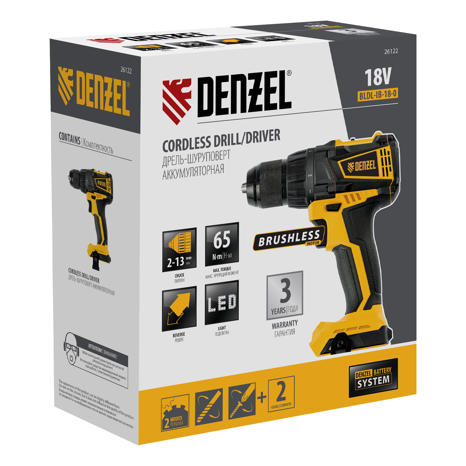 Дрель-шуруповерт аккумуляторная, бесщет. BLDL-IB-18-0, Li-Ion, 18 В Denzel в Уфе
