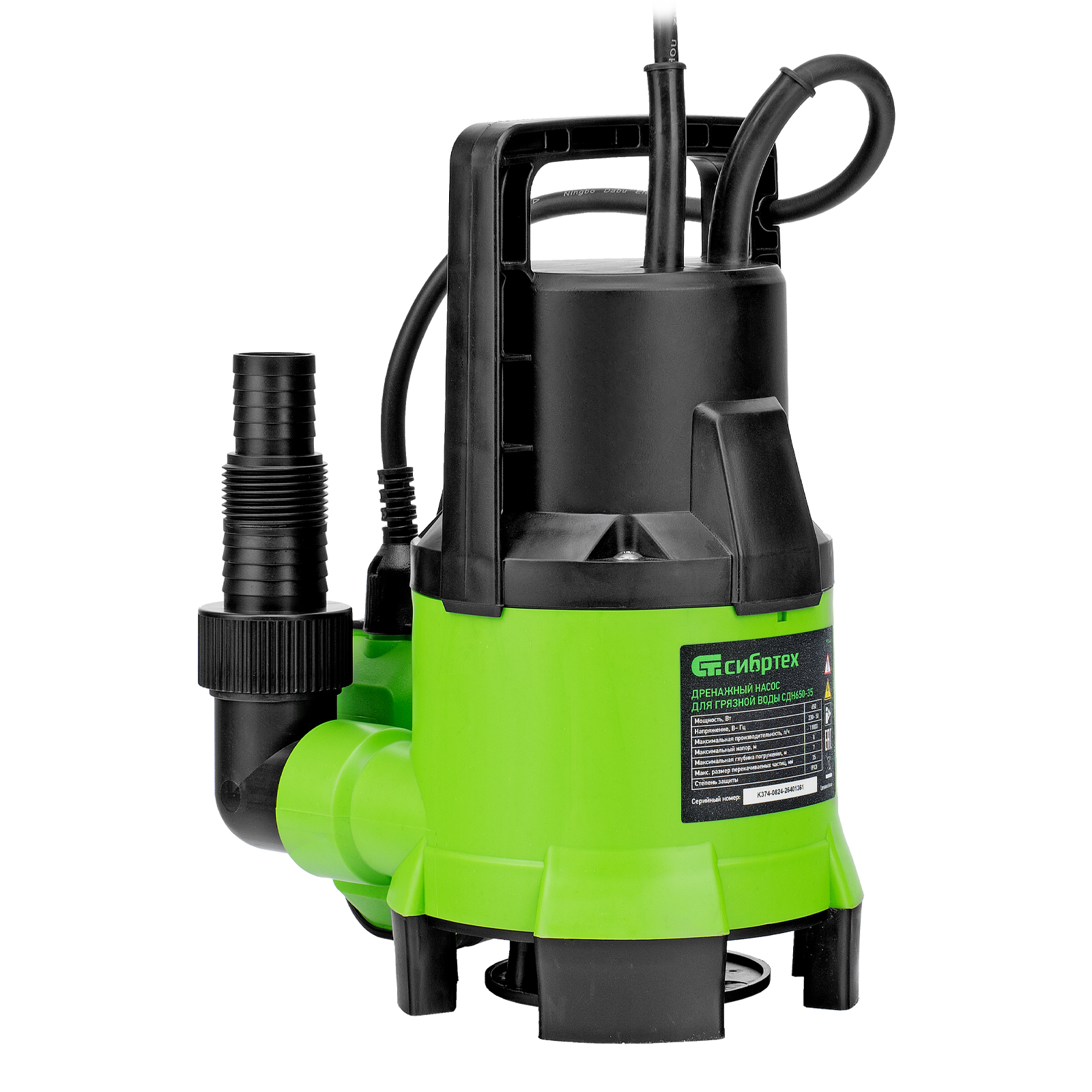 Дренажный насос Сибртех СДН650-35 97264 мощностью 650 Вт и производительностью 11000 л/ч обеспечивает напор до 8 м и предназначен для перекачивания жидких бытовых отходов и сточных вод, содержащей плавающие твердые включения размером до 35 мм. Насос питается от однофазной сети с напряжением 230 В, поэтому подходит для применения в частных домах, дачных коттеджах и на небольших строительных объектах