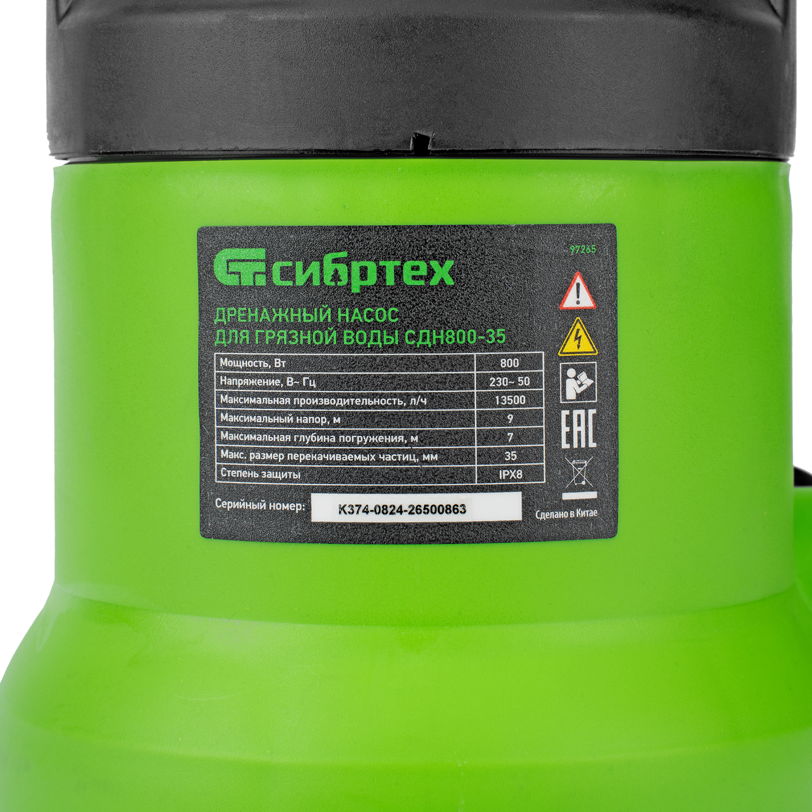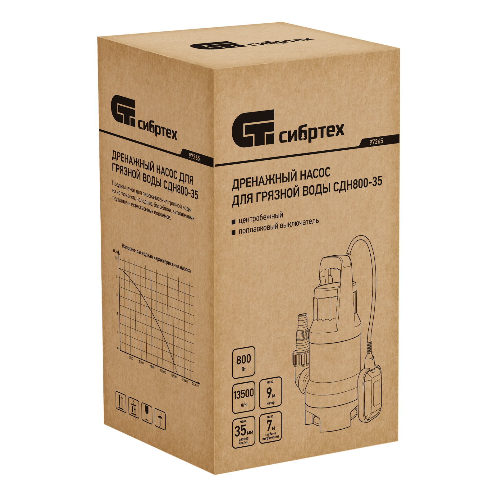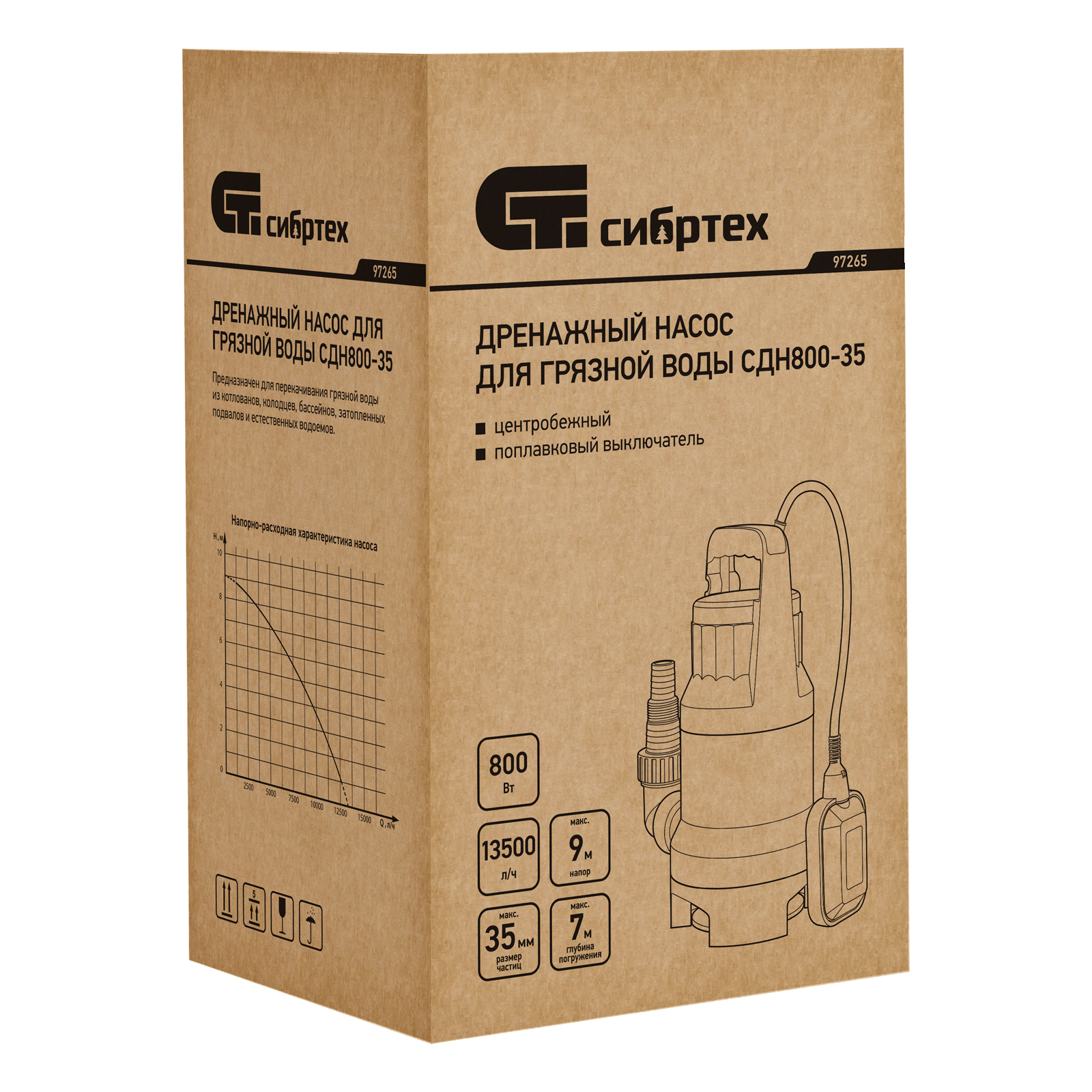 Дренажный насос для грязной воды СДН800-35, 800 Вт, напор 9 м, 13500 л/ч Сибртех в Уфе
