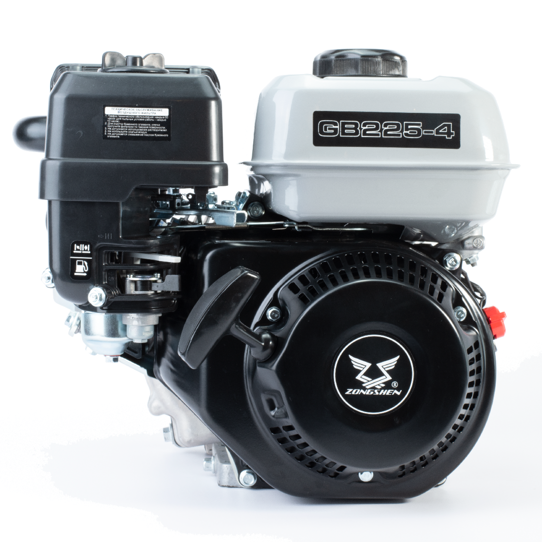 Бензиновый двигатель Zongshen GB225-4 объемом 223 см³. Мощность двигателя составляет 7,5 л.с. Двигатель оснащен цилиндрическим валом диаметром 20 мм и высотой 50 мм. Двигатель Zongshen GB 225-4 предназначен для культиваторов, АВД, мотопомп, садового и строительного оборудования.