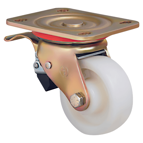 Большегрузное колесо ED01HKZ55F бренда EMES изготовлено из нейлона, устойчиво к воздействию различных агрессивных химических веществ. Подходит для эксплуатации в условиях, требующих соблюдения высоких санитарно-гигиенических требований — например, на предприятиях пищевой промышленности, в лабораториях и медицинских учреждениях. Кронштейн у модели поворотный, изготовлен из оцинкованной стали. Наличие тормозного механизма позволяет при необходимости надежно блокировать колесо, предотвращая его самопроизвольное перемещение.