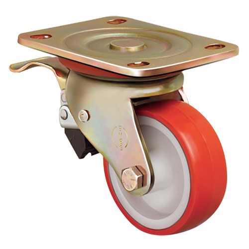 Большегрузное колесо EMES ED01 ZBP 55 F имеет поворотный кронштейн с ножным тормозом. Полиуретановая шинка устойчива к истиранию и механическим повреждениям. Максимальная грузоподъемность колесной опоры составляет 80 кг, общая высота — 80 мм. Обод изготовлен из нейлона. Модель подходит для установки на платформенные тележки, передвижное складское и строительное оборудование.