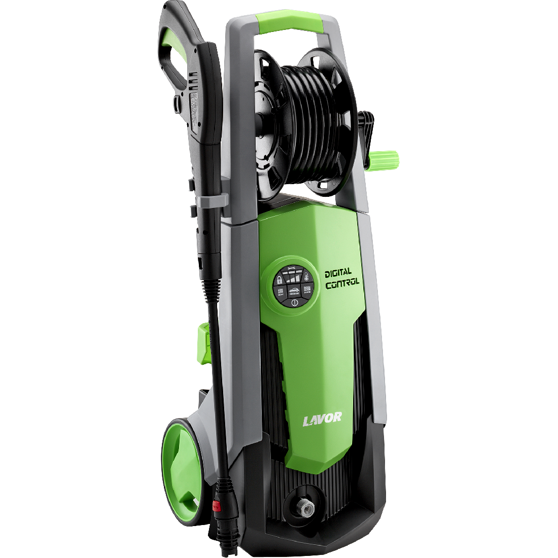 Электрическая минимойка LAVOR Predator 180 Digit имеет несколько различных насадок в комплекте, максимальное давление составляет 180 бар. Длинный штанг на катушке дает возможность пользователю свободно перемещаться вокруг аппарата, если этого требуют условия уборки.