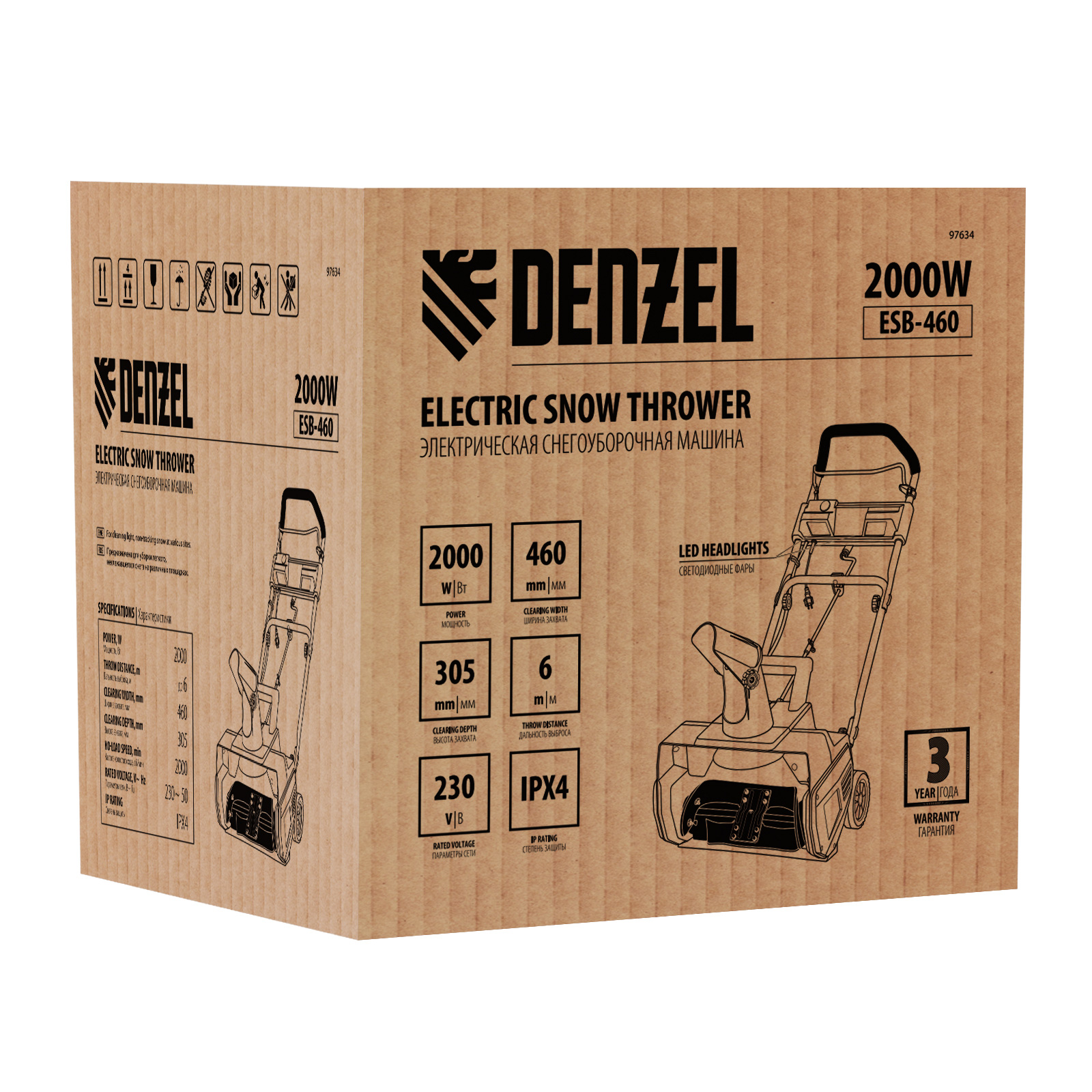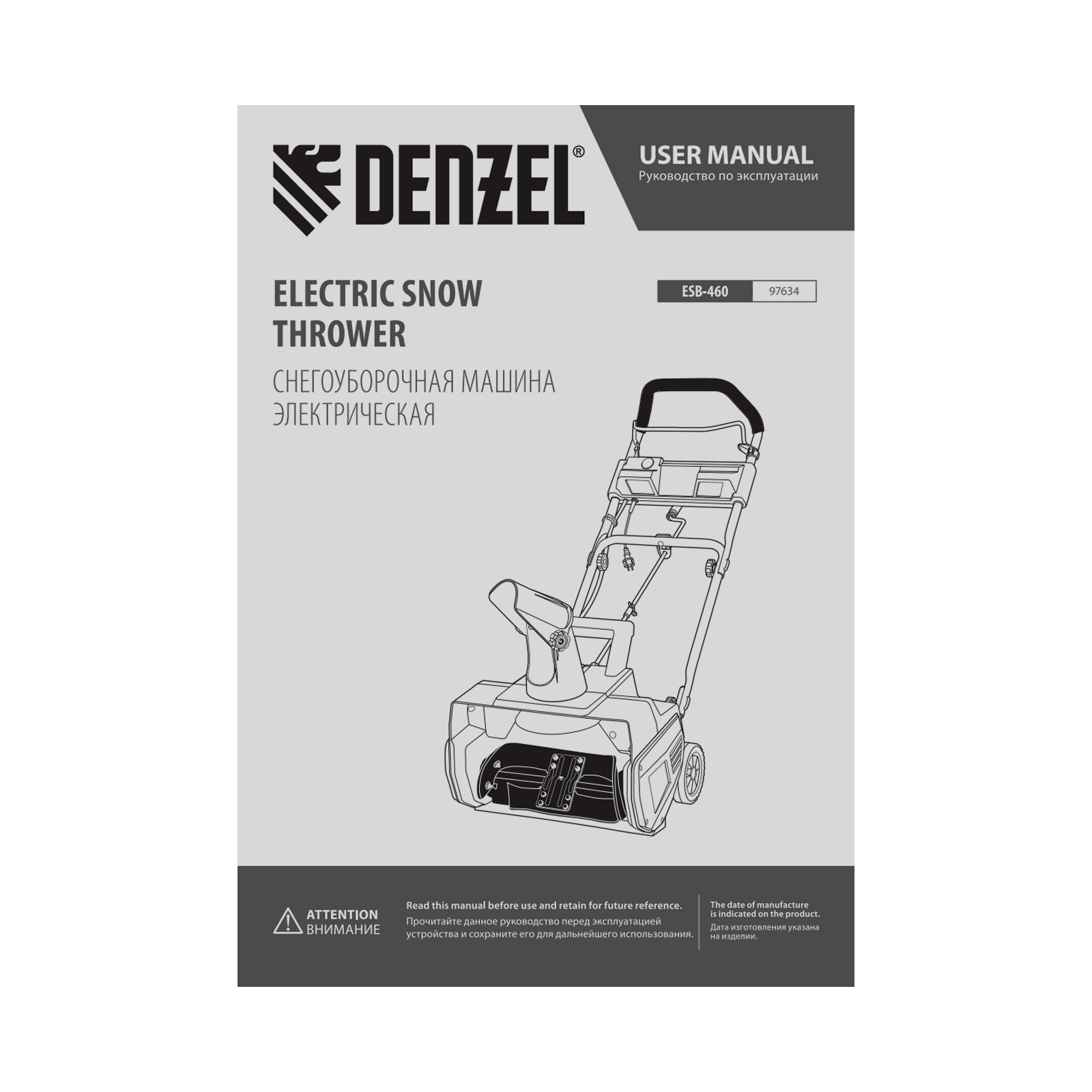 Электрическая снегоуборочная машина ESB-460, 2 кВт Denzel в Уфе