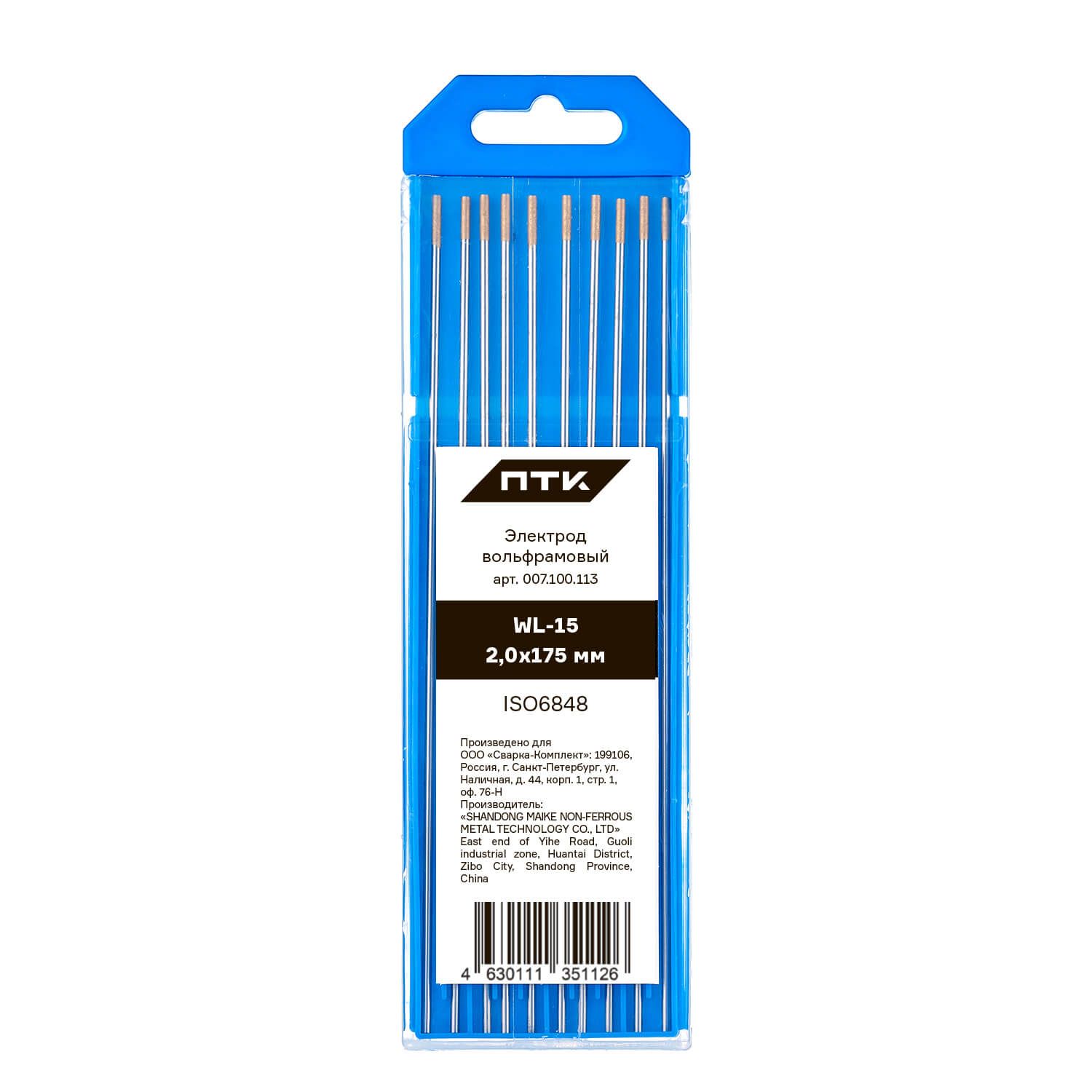 Диаметр электрода 2,0 мм, длина электрода 175 мм. Вольфрам имеет отличительное цветовое обозначение – золотой торец.