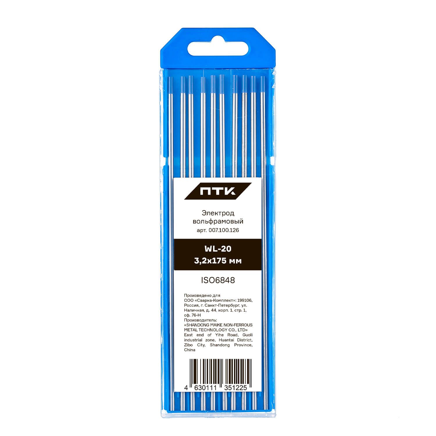 Диаметр электрода 3,2 мм, длина электрода 175 мм. Вольфрам имеет синий цветовой код. Поставляется в пластиковом пенале по 10 штук. В карточке с товаром указана цена за 1 вольфрамовый электрод.
