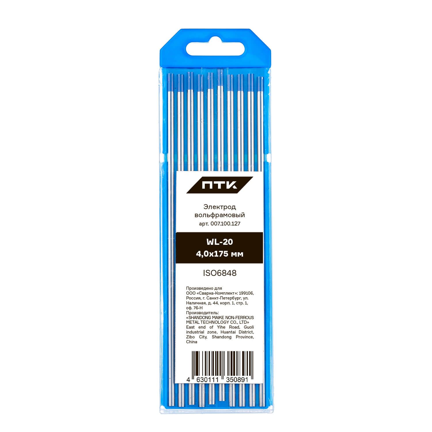Диаметр электрода 4,0 мм, длина электрода 175 мм. Вольфрам имеет синий цветовой код. Поставляется в пластиковом пенале по 10 штук. В карточке с товаром указана цена за 1 вольфрамовый электрод.