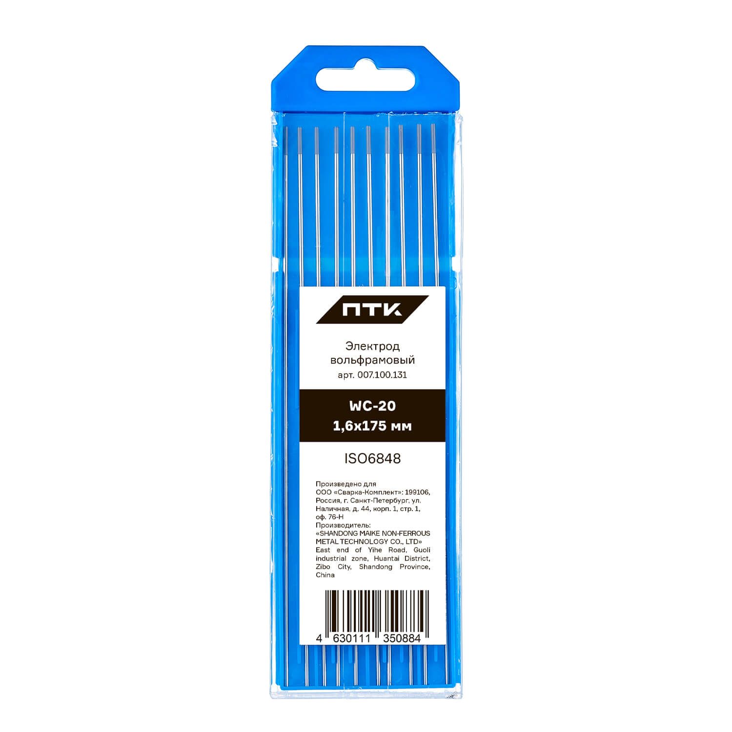 Диаметр электрода 1,6 мм, длина электрода 175 мм. Вольфрам имеет серый цвет торца. Поставляется в пластиковом пенале по 10 штук. В карточке с товаром указана цена за 1 вольфрамовый электрод.