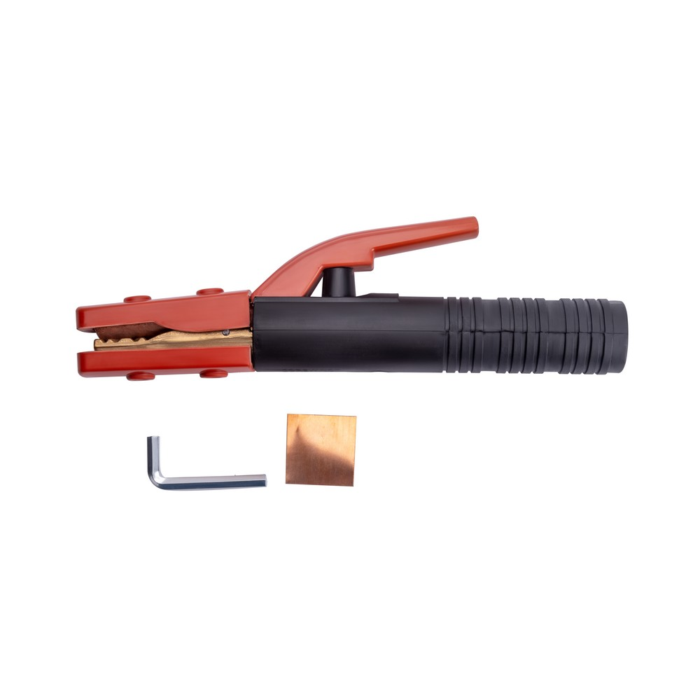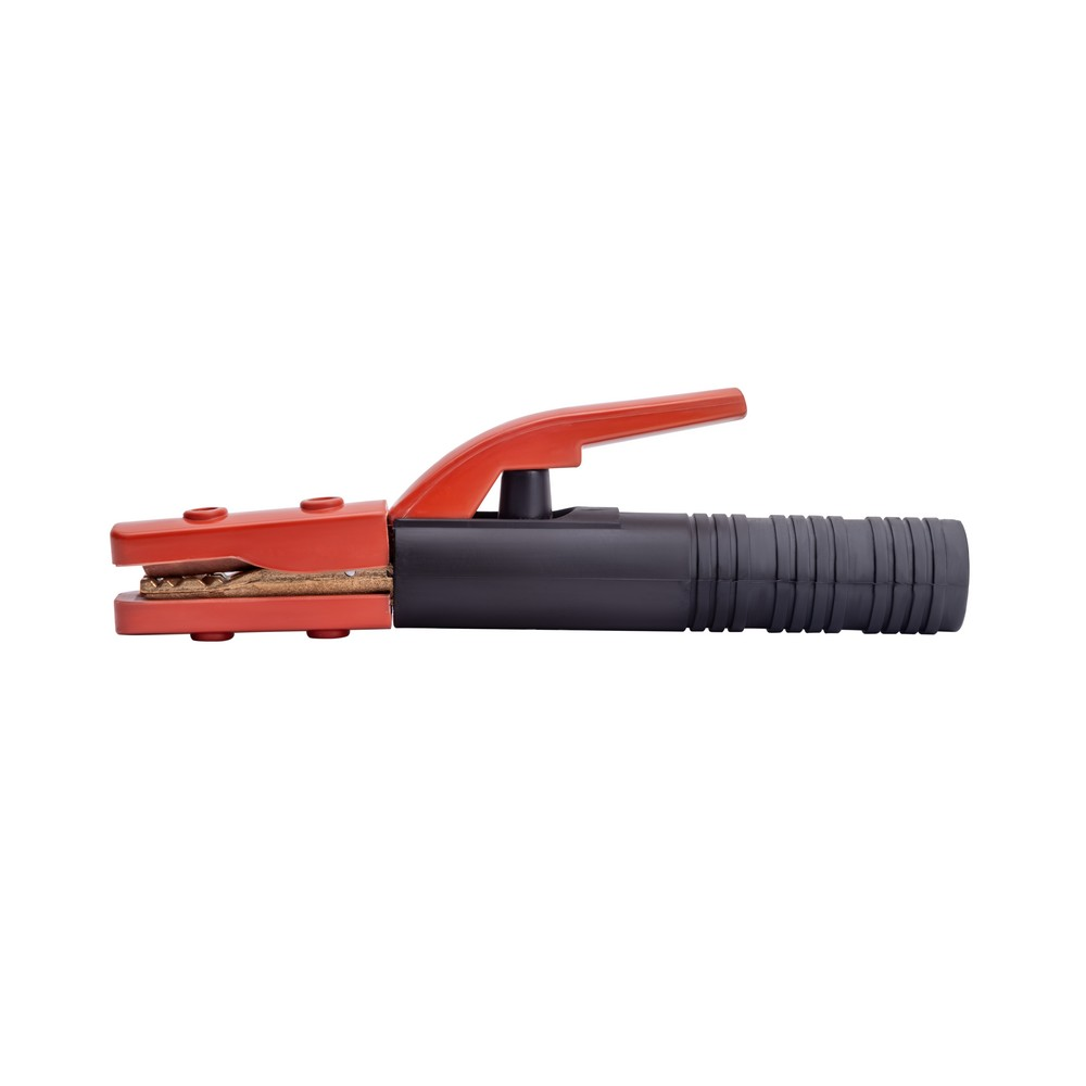 Электрододержатель EH-600A американского типа (основа зубчатых держателей сталь, покрытая медным токопроводящим сплавом) сделан из износостойких, термически стойких и прочных материалов. Область обхвата держателя ладонью сварщика имеет надёжную электроизоляцию. Покрытый электрод, имеющий основное, рутиловое или целлюлозное покрытие надёжно фиксируется при помощи мощного пружинного механизма. Механизм держателя позволяет зафиксировать сварочный электрод под углами 90 и 180 градусов. К электрододержателю подсоединяют медный сварочной провод сечением 80 мм, алюминиевый омеднённый кабель (CCA) диаметром 120 мм. Сила фиксации электрода составляет до 25 кг/см².ЭРГОНОМИЧНОСТЬ: Эргономичная противоскользящая рукоятка хорошо лежит в руке. Термостойкий пластик обеспечивает безопасность во время рабочего процесса.ПРЕИМУЩЕСТВА:Простая, удобная и надёжная конструкцияМощный зажимной механизмНадёжная фиксация сварочного кабеляУстановка электрода в нескольких пространственных положениях