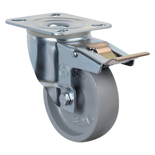 Колесо EMES EM01 VKV 80 F устанавливается на передвижное оборудование, которое используется при высоких температурных режимах. Устойчиво к осевым и радиальным нагрузкам, имеет высокую несущую способность. Изготовлено из высокопрочного чугуна, поворотный кронштейн с тормозом — из оцинкованной стали. Не рекомендуется к использованию на полах из хрупких материалов.