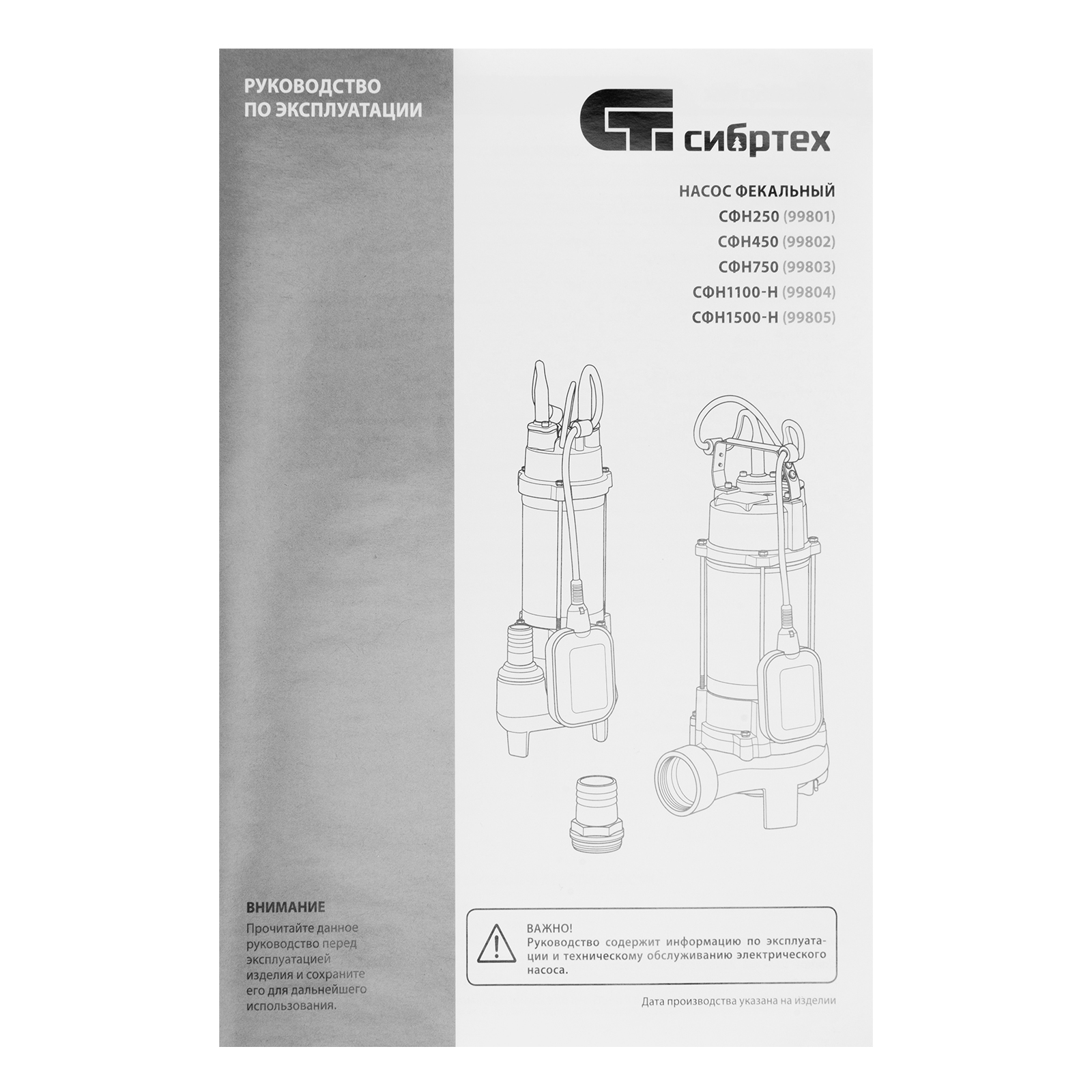 Фекальный насос СФН450, 450 Вт, напор 15 м, 21000 л/ч Сибртех в Уфе