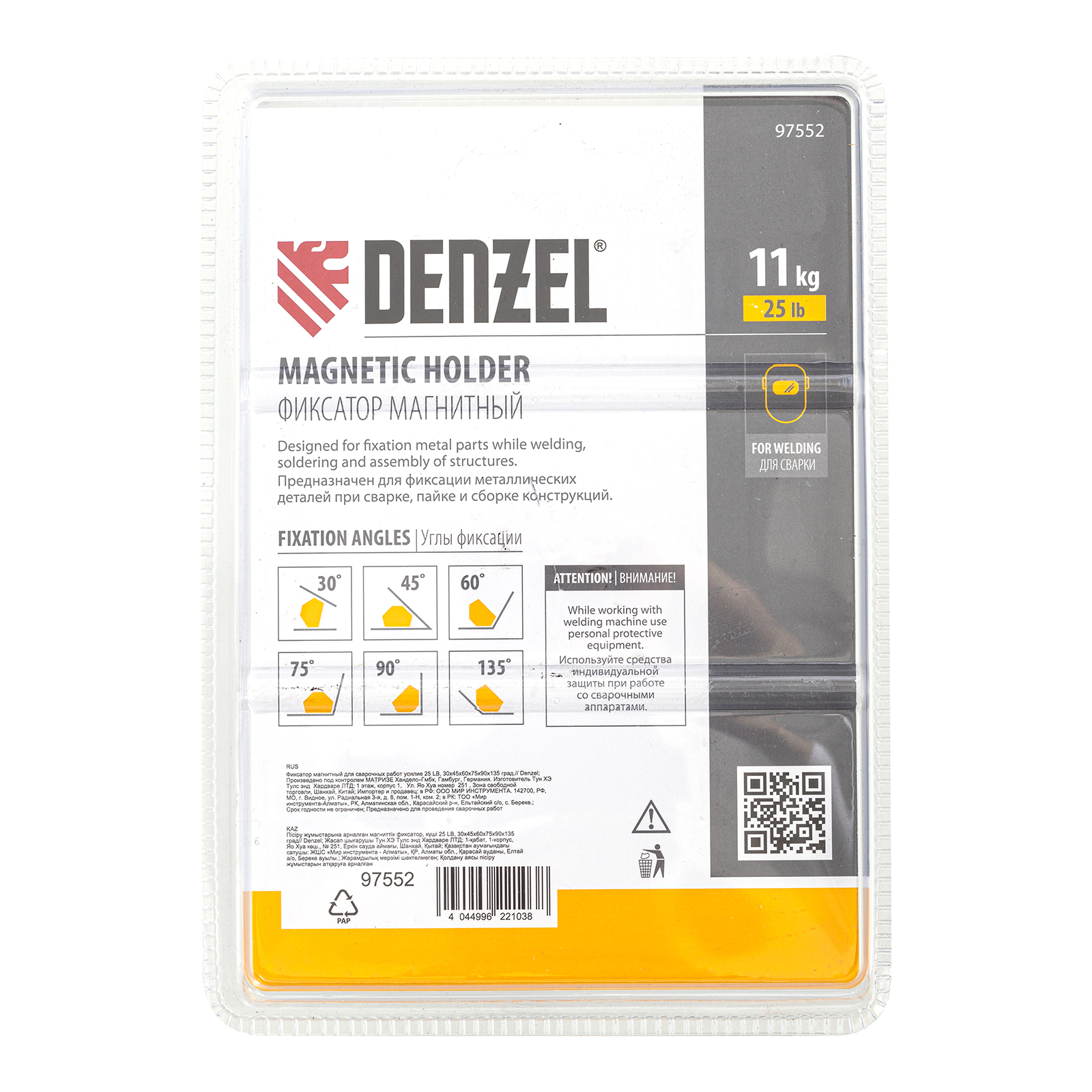 Фиксатор магнитный для сварочных работ усилие 25 LB, 30х45х60х75х90х135 град. Denzel в Уфе