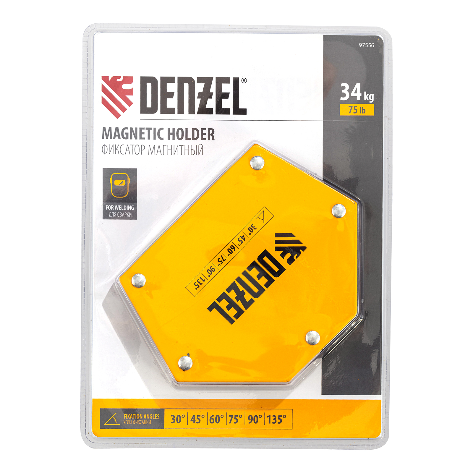 Фиксатор магнитный для сварочных работ усилие 75 LB, 30х45х60х75х90х135 град. Denzel в Уфе