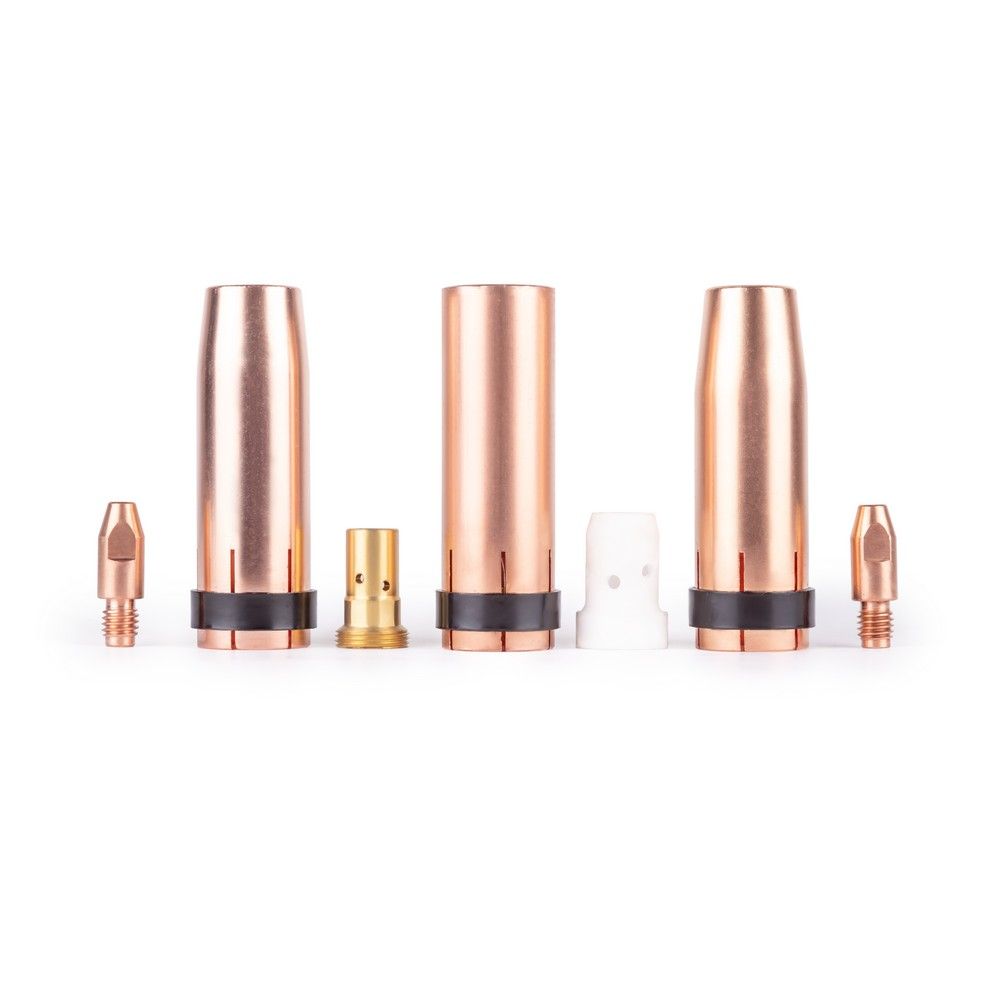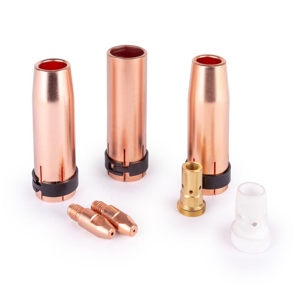 Эффективность процесса электросварки и, соответственно, качество конечного результата напрямую зависят от качества и надежности сварочного оборудования, аксессуаров, расходных материалов. Стабильная работа оборудования невозможна без надежных комплектующих, являющихся в данном случае частью общей системы – сварочного поста. Эти незначительные на первый взгляд элементы на самом деле существенно влияют на работоспособность аппарата и, собственно, напрямую на качество сварного шва. Поэтому в случае их износа необходимо оперативно купить качественную замену данным комплектующим. Набор комплектующих MIG-500 и другие расходные материалы из нашей номенклатуры позволят исключить простой оборудования, ведь его работоспособность будет очень быстро восстановлена. Аксессуары имеют достаточно большой рабочий ресурс и приемлемые цены.