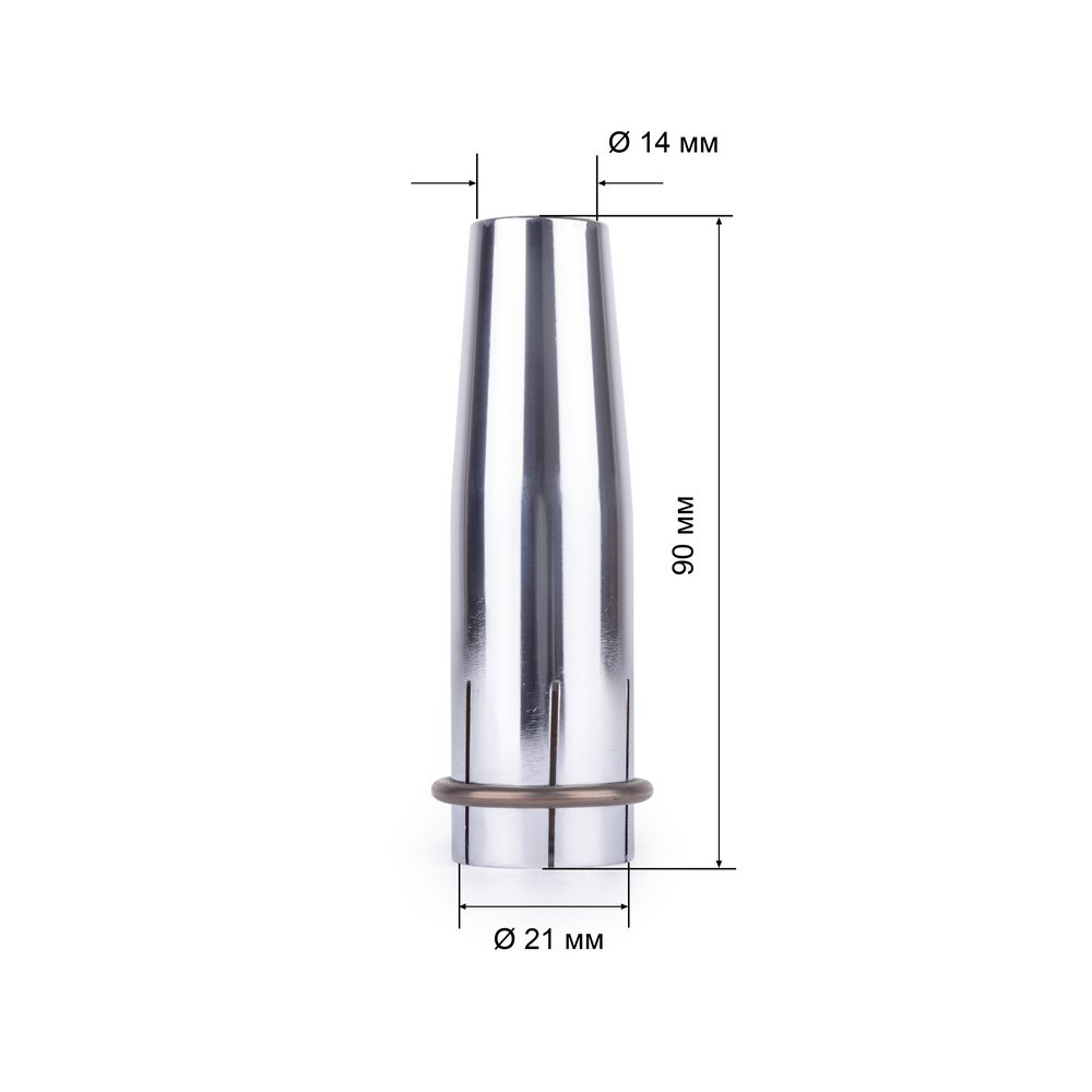 Газовое коническое сопло диаметром 14 мм — обязательный элемент горелки MIG-40. Изделие предназначено для направления газового потока к месту сварки и создания защитной среды сварочной ванны.