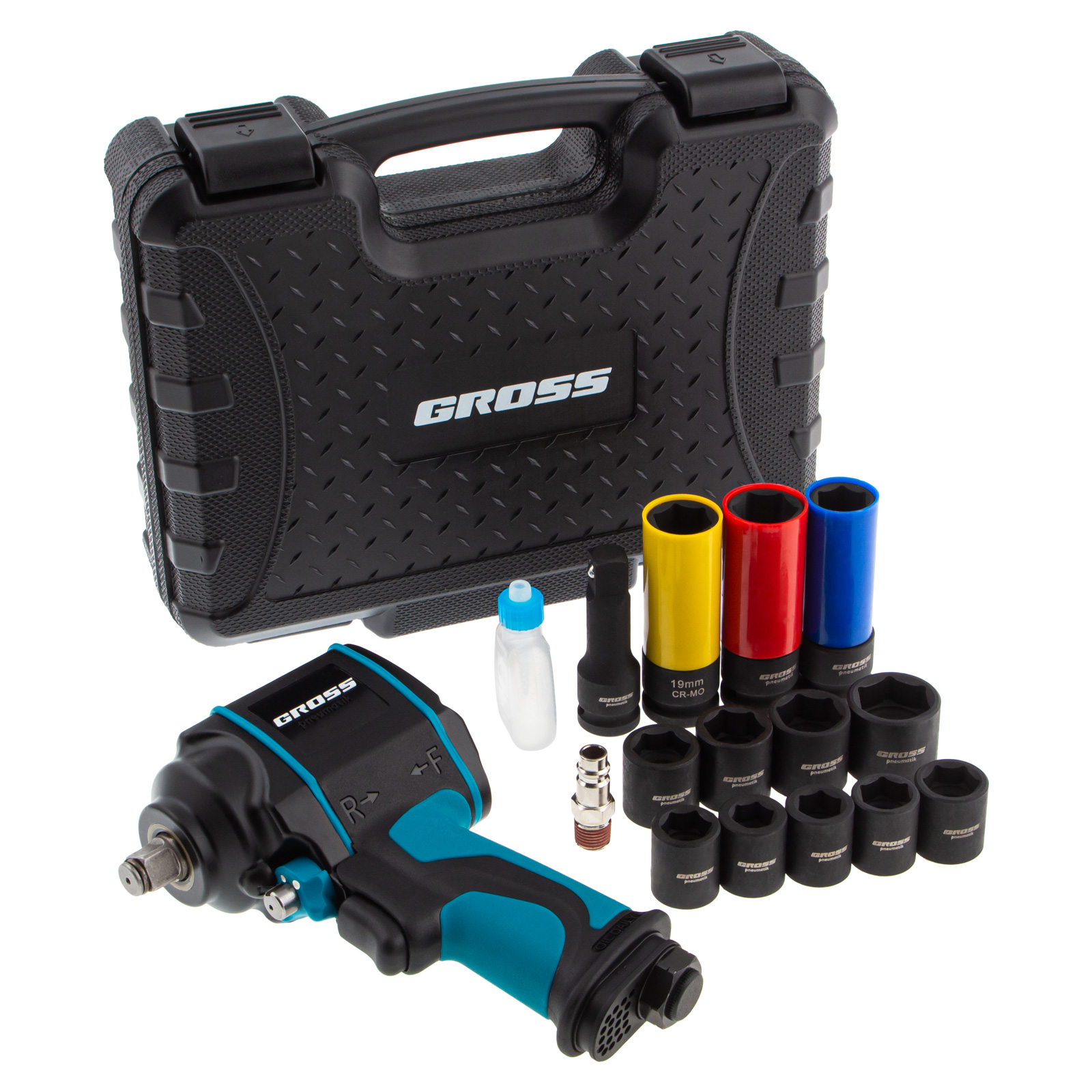 Гайковерт пневматический ударный G985K2, 1/2, 610Нм 9000 об/мин, с набором 17 предметов Gross в Уфе